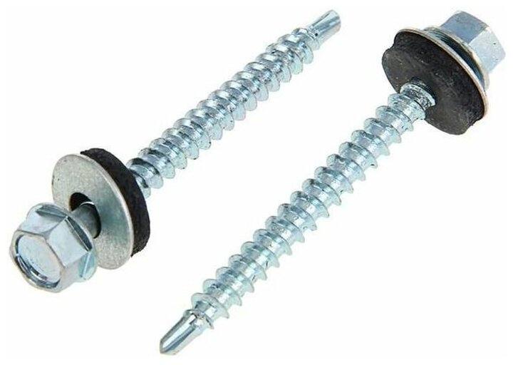 Стальные саморезы с шестигранной оцинкованной головкой со сверловидным наконечником, укомплектованные шайбой с резиновой прокладкой, для крепления кровельных материалов к металлическим конструкциям (диаметр самореза 5,5 мм и 6,3 мм).