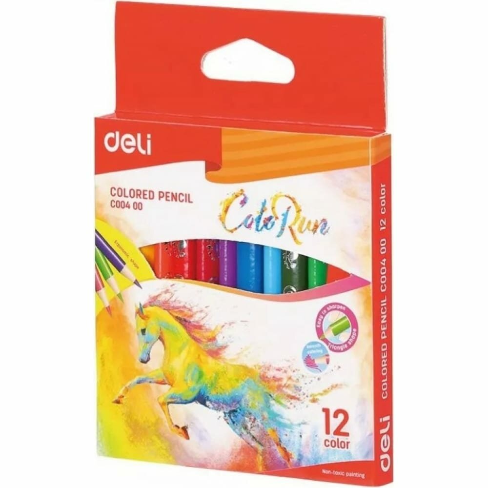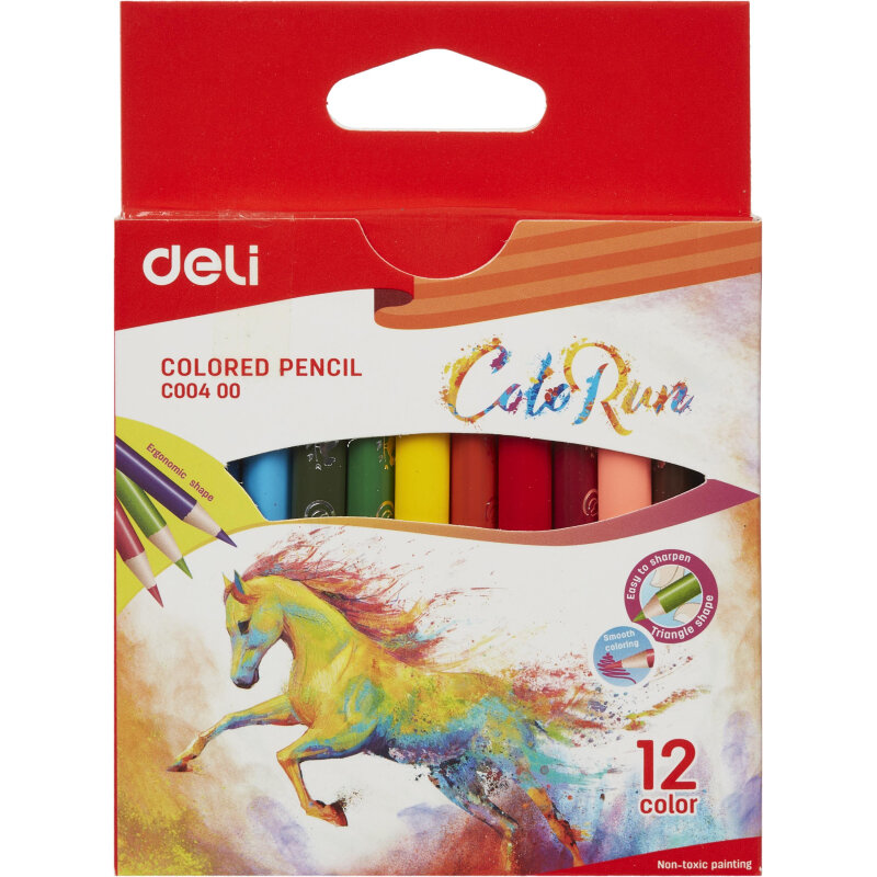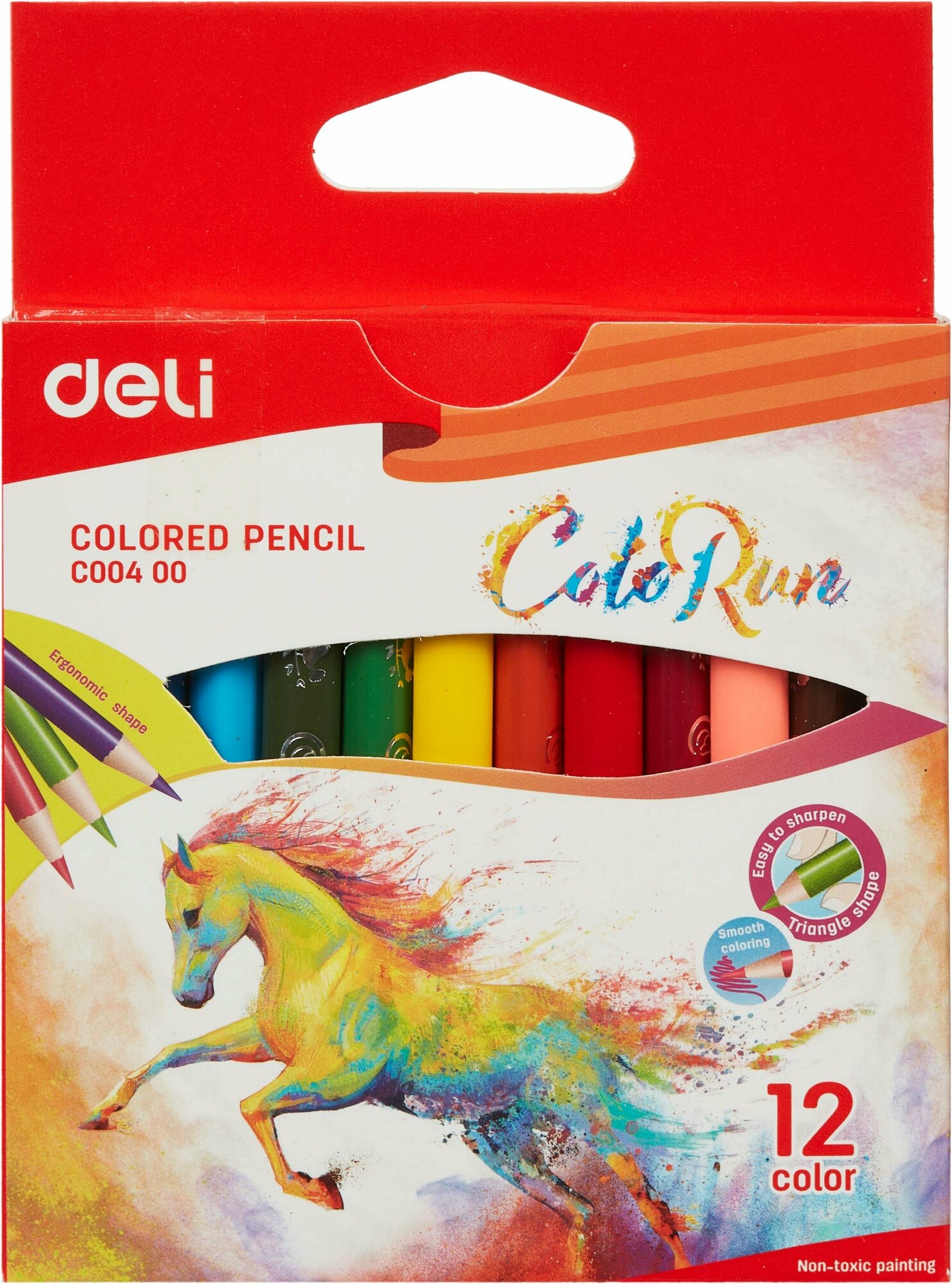 Карандаши цветные Deli ColoRun трехгран. тополь 12цв. короткие коробка/европод. EC00400