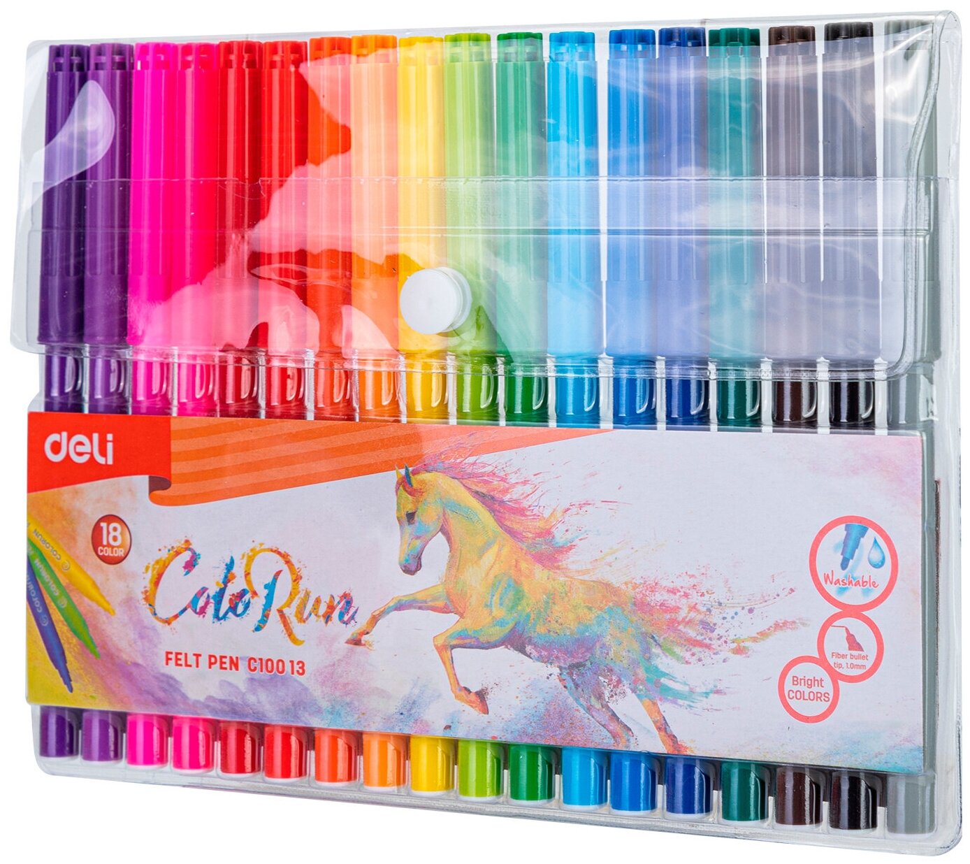 Фломастеры Deli ColoRun Вентилируемый 18цв. пакет с европодвесом EC10013