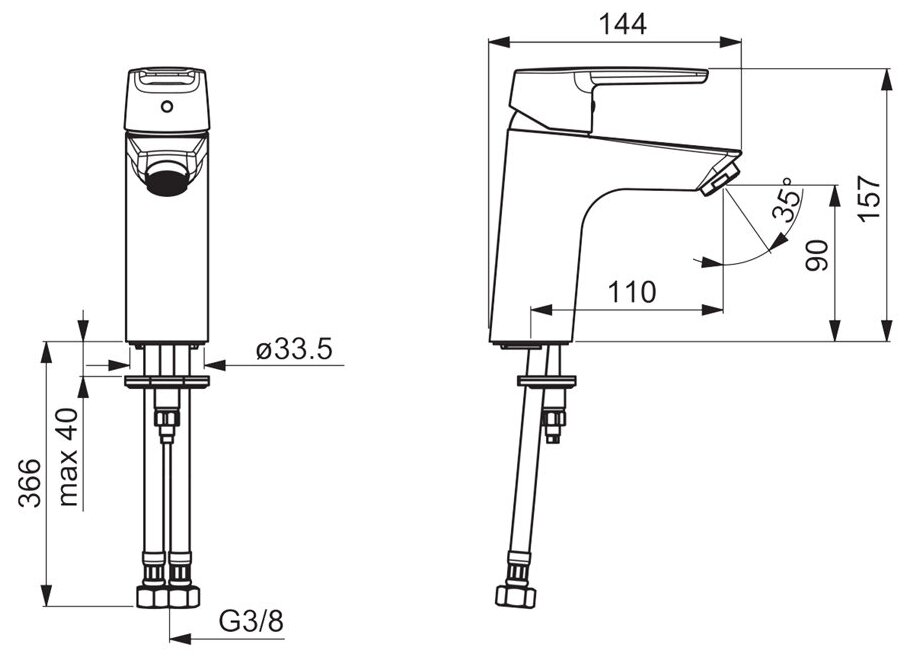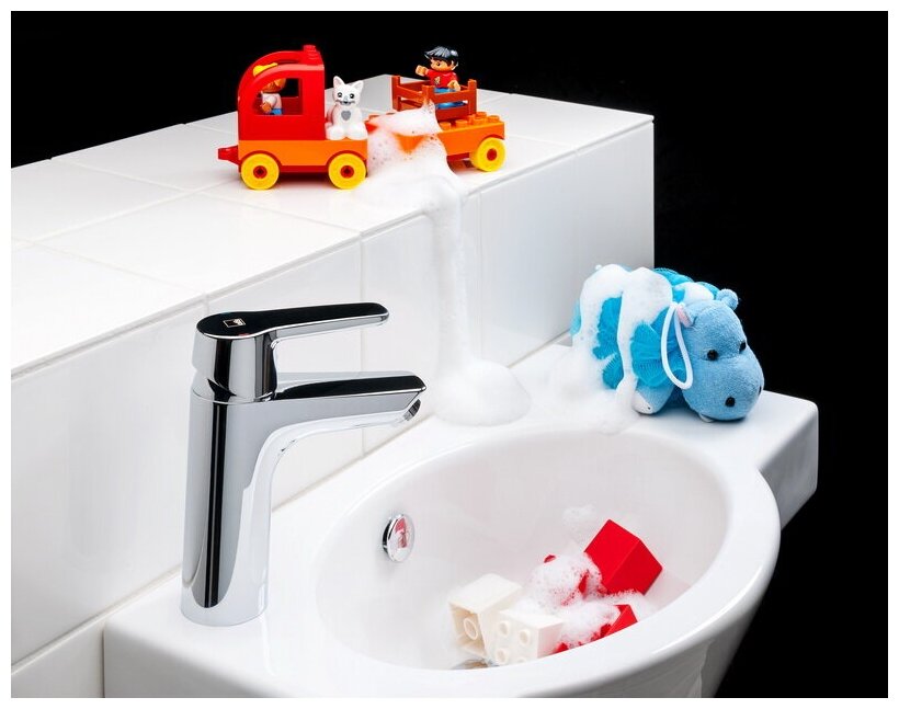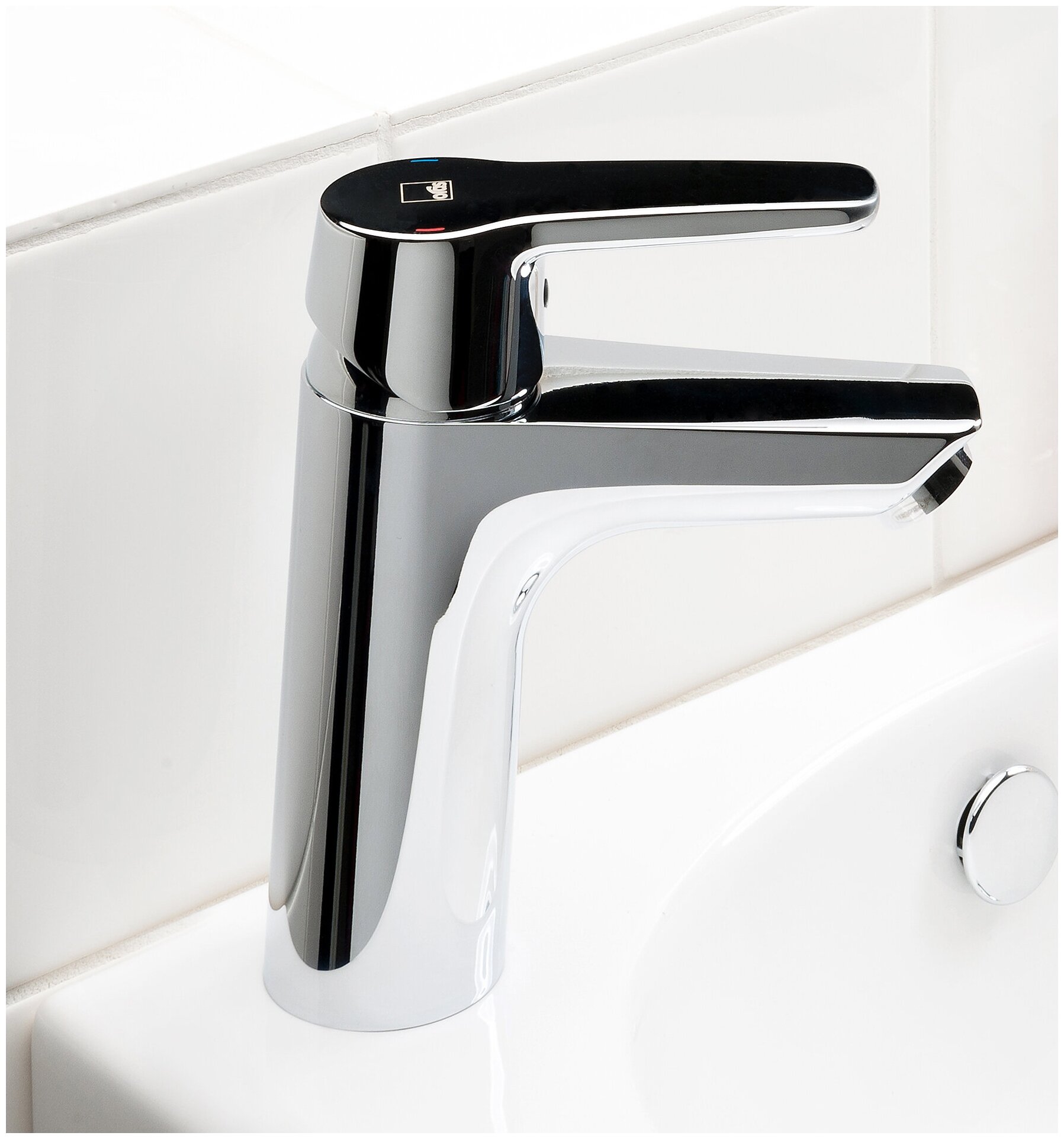 - Смеситель позволяет экономить ресурсы благодаря опции ограничения потока и температуры воды.