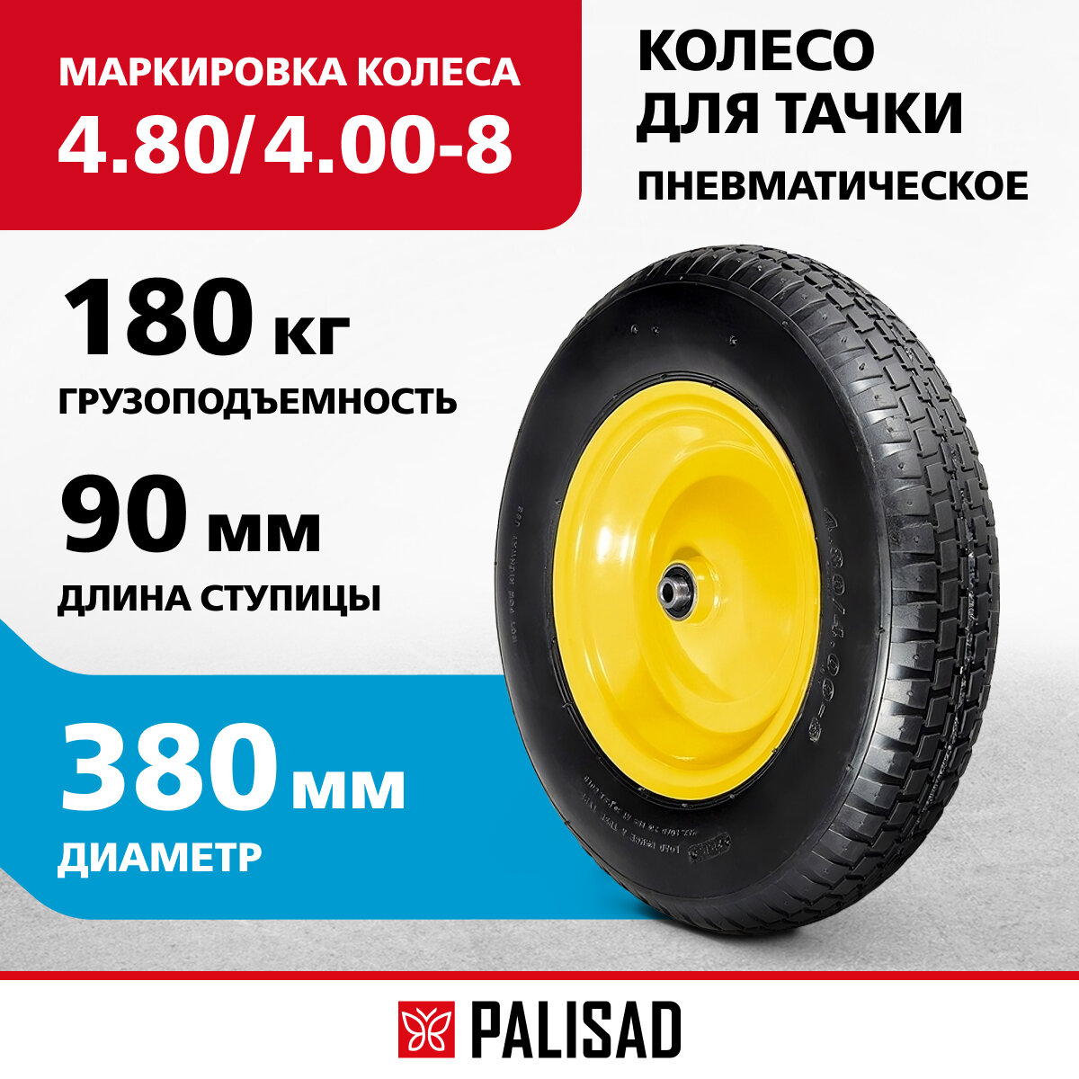 | Наименование модели | 4,80/4,00-8 D380мм внут диам 20мм длина оси 90мм |
