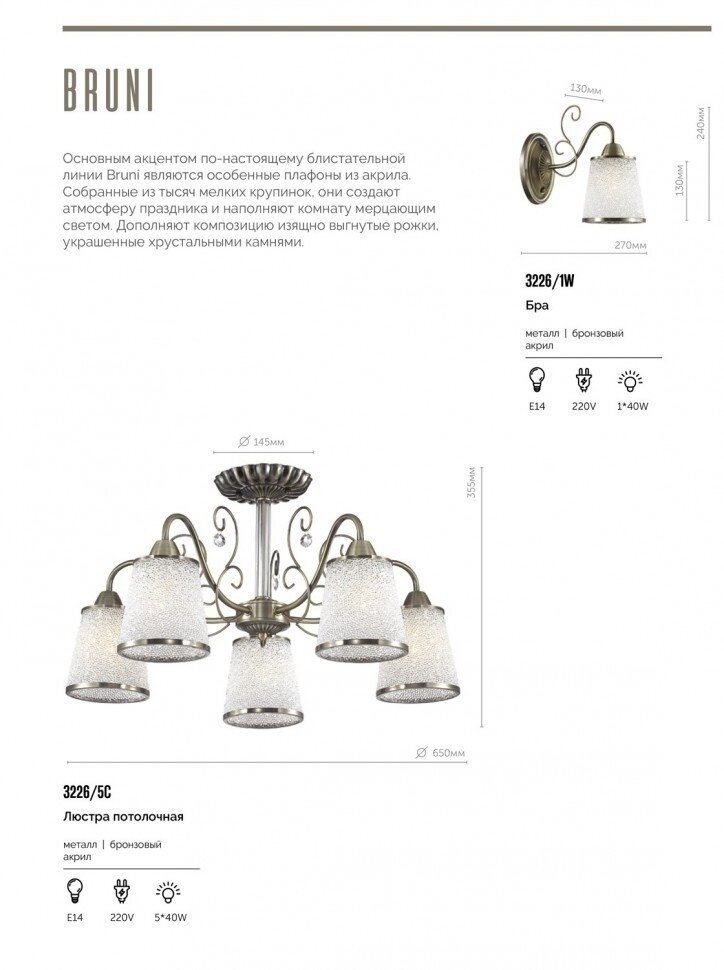 Модель: Бра настенное Lumion Bruni бронза 1хЕ14х40 Вт
