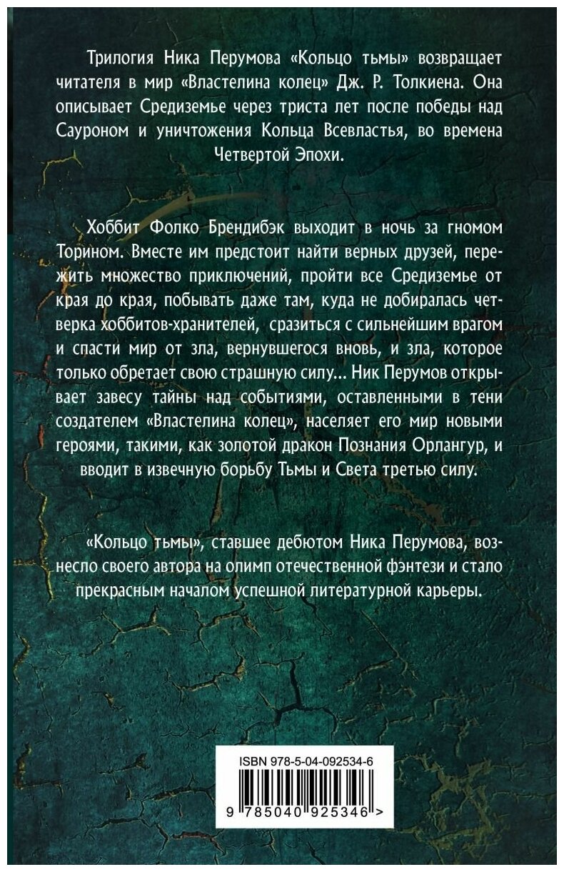 Вторя книга из трилогии "Кольцо тьмы" - своеобразного продолжения "Властелин Колец". События развиваются, приключения продолжаются. Перумов ввел новых героев и новые обстоятельства, которые не упоминаются в романе Толкиена. Но они отлично вписались в своеобразное продолжение Властелина Колец. Книга постоянно держит в напряжении. Читается легко и интересно.
