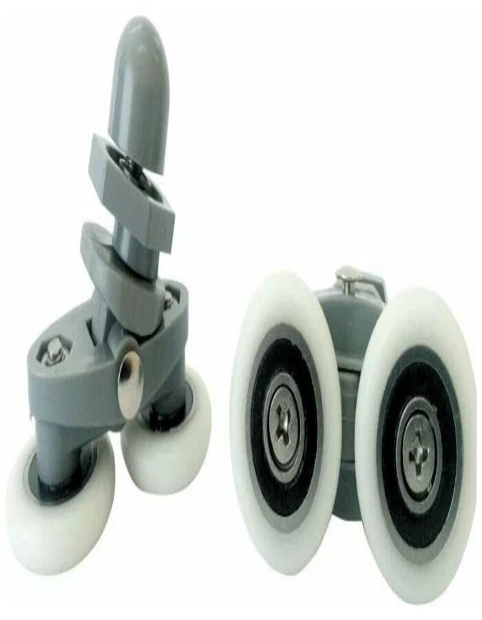 Комплект роликов предназначен для установки на одну дверь душевой кабины. Два устанавливаются сверху, два - снизу. Двойные ролики с эксцентриковой системой регулировки обеспечивают плавное скольжение, легкое открывание двери и надежную фиксацию двери. Ролик изготовлен из латуни, стали и пластика. Устанавливается в специальное отверстие в стеклянной двери. Подшипник защищен с обеих сторон.