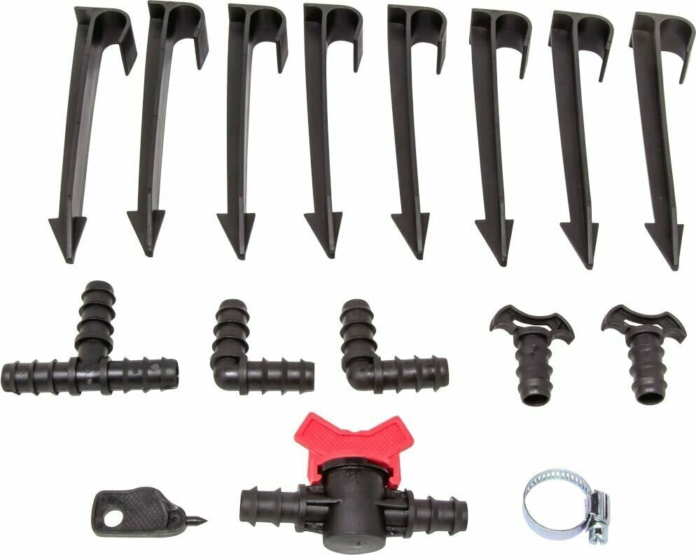 - Гибкая трубка позволяет расположить систему полива по сложной схеме. Количество подаваемой воды можно контролировать с помощью стартового крана, который идет в комплекте.