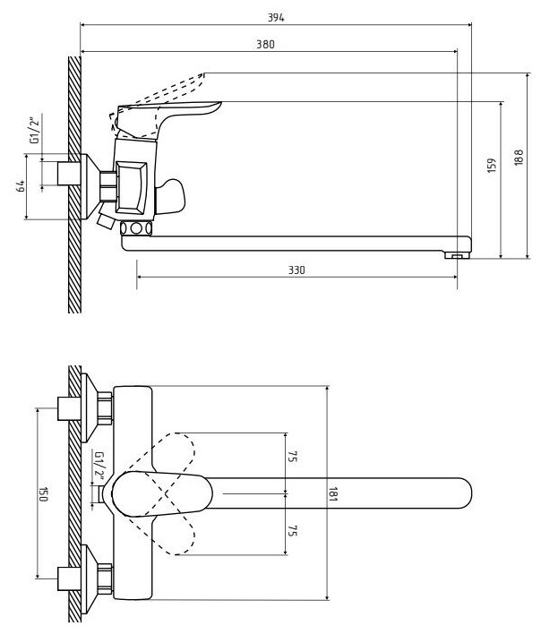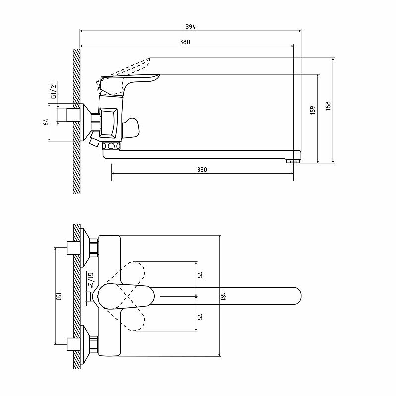 | Подключение | с эксцентриками (1/2"х3/4") |