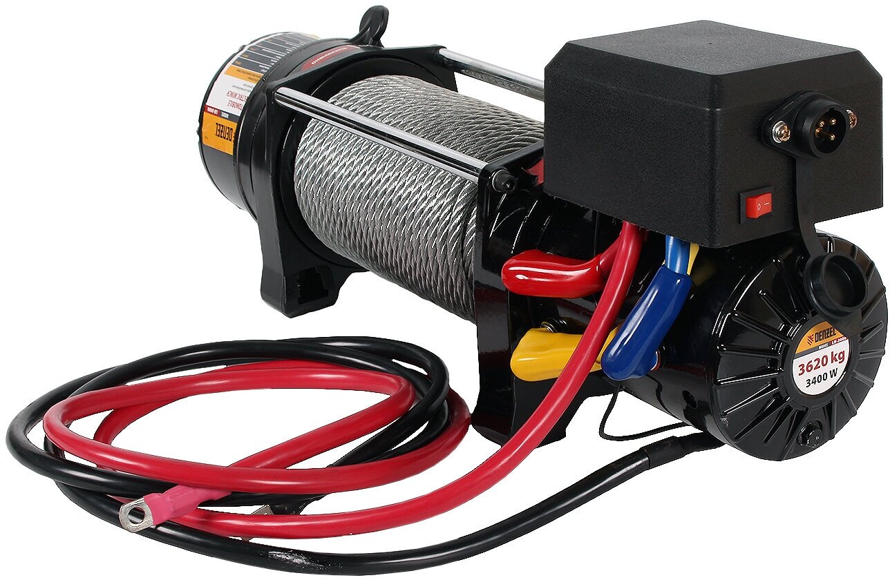 Лебедка Denzel 52023 мощностью 3,4 кВт и скоростью намотки троса 1,9 м/мин используется для перемещения грузов в горизонтальной плоскости, а также эвакуации и вытягивания из водоемов и кюветов транспортных средств весом до 3,6 т, например, квадроциклов, легких внедорожников, сельхозтехники. Лебедка устанавливается непосредственно на бампере, раме или кузове, проста в применении и не требует специальной подготовки. Преимущества • Безопасная эксплуатация — тормозной механизм не допускает самопроизвольного разматывания троса. • Крепкое сцепление — зацепной крюк с защитной скобой надежно фиксирует груз без риска его соскальзывания. • Удобное управление на расстоянии — в комплект поставки входит выносной пульт с кабелем, устойчивым к излому. • Прочность — стальной трос диаметром 8 мм отличается малым коэффициентом растяжения, а благодаря плотному плетению не рвется под нагрузкой. • Высокий ресурс — долгий срок службы устройства обеспечивают надежные комплектующие и высокое качество сборки. • Увеличенная рабочая зона — длина троса 29 м позволяет работать на большом расстоянии. • Простая подготовка к работе — лебедка подключается к прикуривателю 12 В или напрямую к аккумулятору автомобиля. • Удобная транспортировка — на корпусе предусмотрена жесткая ручка. • Гарантия 3 года — качество лебедки подтверждено производителем.