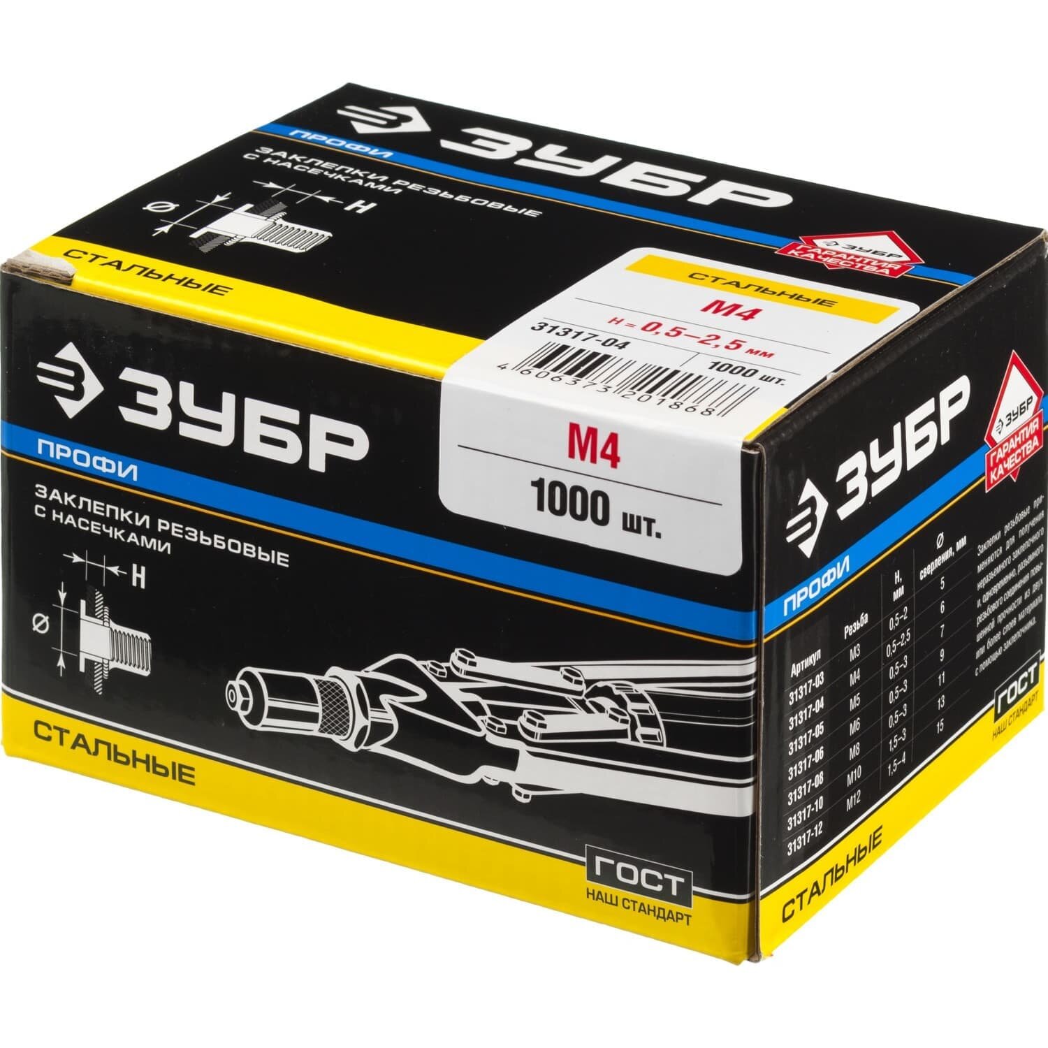 ЗУБР М4, станд.бортик, стальные резьбовые заклепки с насечками, 1000 шт, Профессионал (31317-04)