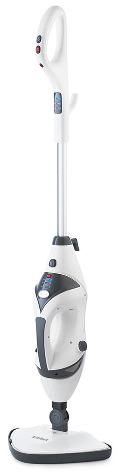 Паровая швабра Kitfort / Модель с помпой, имеет управление на рукоятке и на корпусе ручного модуля. Поможет не только вымыть пол, но также имеет 13 различных насадок в наборе для различных целей. Это швабра «5 в 1» - швабра, ручной отпариватель, стеклоочиститель, дезинфектор и пароочиститель. При помощи кнопки для отсоединения можно снять удлинительную трубку от корпуса швабры. Есть вертикальная парковка.