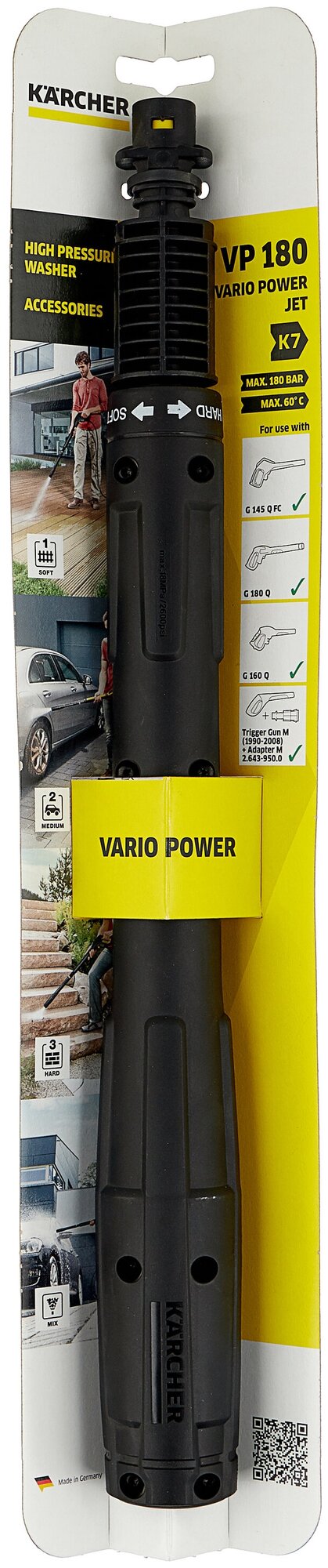 Струйная трубка Vario Power VP 180 изготовлена из высокопрочного пластика. Предназначена для использования совместно с аппаратами высокого давления Керхер классов К 7. Давление струи регулируется от низкого до высокого, в зависимости от поставленных задач. Низкое давление хорошо подходит для нанесения чистящего средства. Трубка хорошо очищает фасады зданий, заборы, стены, а также автомобили и малогабаритную технику.