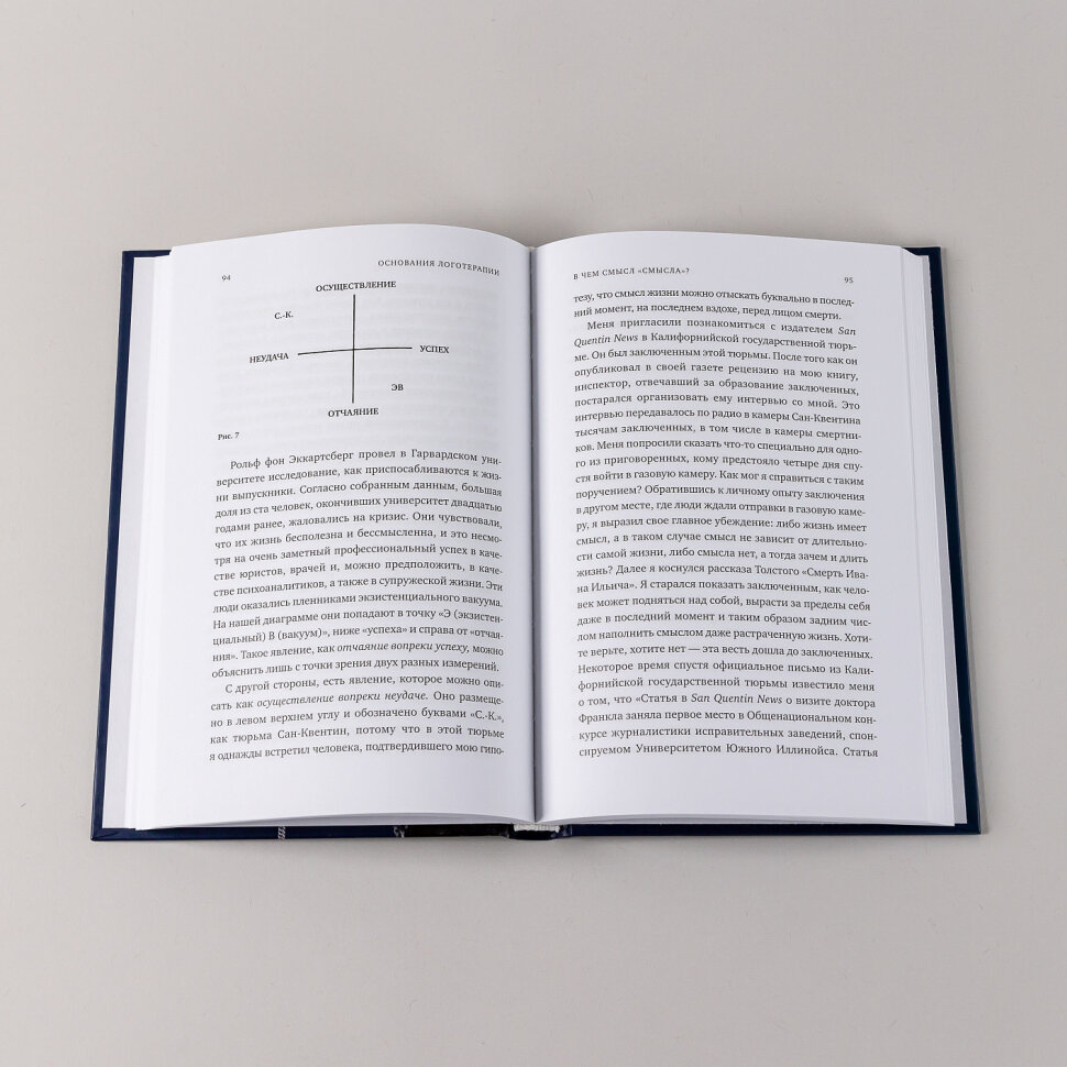 Сразу стоит отметить, что структура книги специфическая т.к. это сборник лекций/выступлений, то мысли довольно часто повторяются, буквально один и тот же эпизод может описываться несколько раз. Однако в дополнение к психоанализу было интересно узнать об иных методах лечения: логотерапии, парадоксальной интенции. После Фрейда и Франкла возникает вопрос, а все ли в человеке детерминировано? Т.к. одна из главных мыслей "Воли к смыслу", что всецело полагаться на инстинкты и рационализацию посредством "Смещения", "СуперЭго" и т.д. нельзя, существует логос - смысл, то Человеческое, что игнорирует психоанализ. С точки зрения экзистенциализма "Человек сам себя определяет". Касательно смысла бытия, приводится объяснение, что такое "фрустрация к смыслу - экзистенциальный вакуум" и что не может являться целью жизни индивида. В дополнение к "Принципу наслаждения" Фрейда даны конструктивные замечания относительно стремления человека к гомеостазу и самореализации. Меньшее внимание уделено вопросу меланхолии, ориентир на неврозы, борьбу с навязчивыми состояниями и фобиями. Автор признаёт религию, поэтому не исключены аллегорические примеры, но тем не менее учитывает и атеистические взгляды хотя и косвенно. Забавно встретить аллюзии к Сартру и Фрейду, иногда критика авторов излишняя так как в конечном счёте мысль одного дополняет другого. "Человек не свободен от условий, будь они биологические, психологические или социологические по своей природе. Ho он свободен и всегда остается свободным занять определенную позицию относительно этих условий" (Человек обречён быть свободным) В отношении смысла упомянутые авторы склоняются к трансценденции - выход за пределы собственного я. Смысл жизни ни есть что-то детерминированное, всегда аутентичный путь, но вместе с тем похожий на многие, однако это собственный выбор человека. (навязанный ли извне? влияние общества, среды) Важно занять верную позицию и учитывать совокупность мнений, книга не противоречие, а лишь дополнение к уже сказанному Фрейдом и другими.
