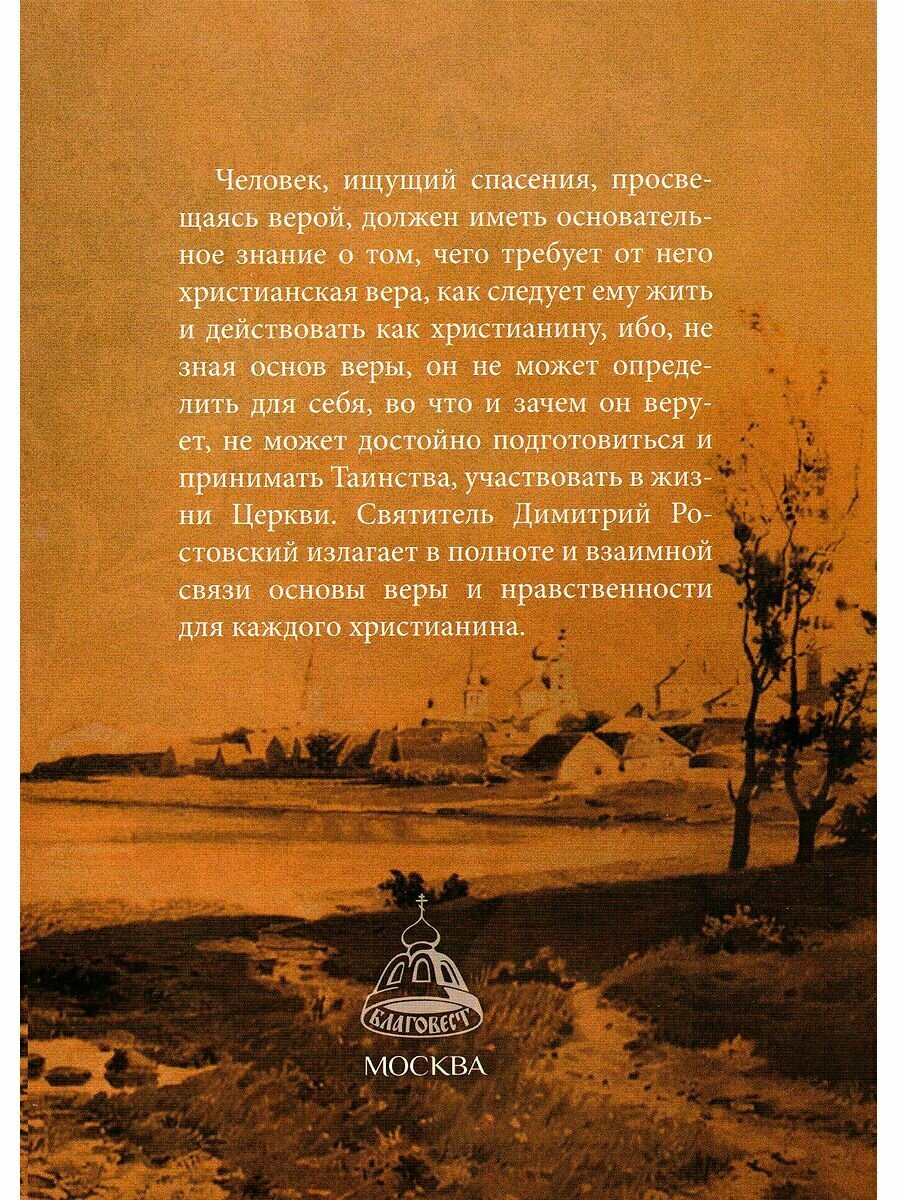 В этой книге приведены простые и сложные вопросы, ответы на которые отражают суть Православия. Святитель Димитрий Ростовский излагает в полноте и взаимной связи основы веры и нравственности для каждого христианина. Это наглядное, очень точное и подробное пособие, простотой изложения (вопрос-ответ) помогающее любому читателю изучить основы православной веры.