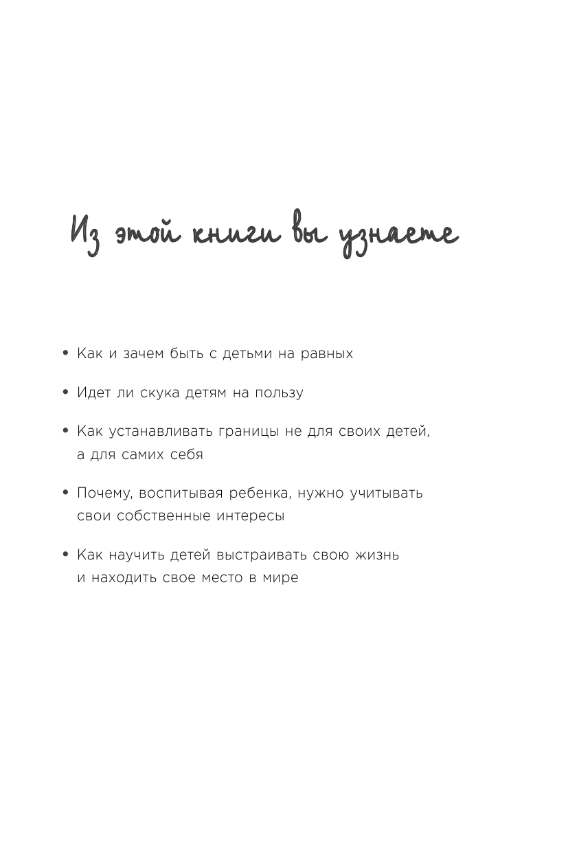 Нет заумных слов, книга написана простым и понятным языком, и потому читается на одном дыхании. Автор разбирает письма своих клиентов и читателей. И, отвечая на их вопросы, раскрывает свои взгляды, принципы взаимодействия с детьми. Автор, знакомя читателя со своей точкой зрения, оставляет место размышлениям читателя, поиску новых вопросов и ответов. При этом автор дает емкие формулировки-рекомендации, как можно сказать ребенку в той или иной жизненной ситуации. Мне понравилась книга, я взяла несколько рекомендаций себе на заметку, и словила общее ощущение о том, как строить диалог. Рекомендую к прочтению!