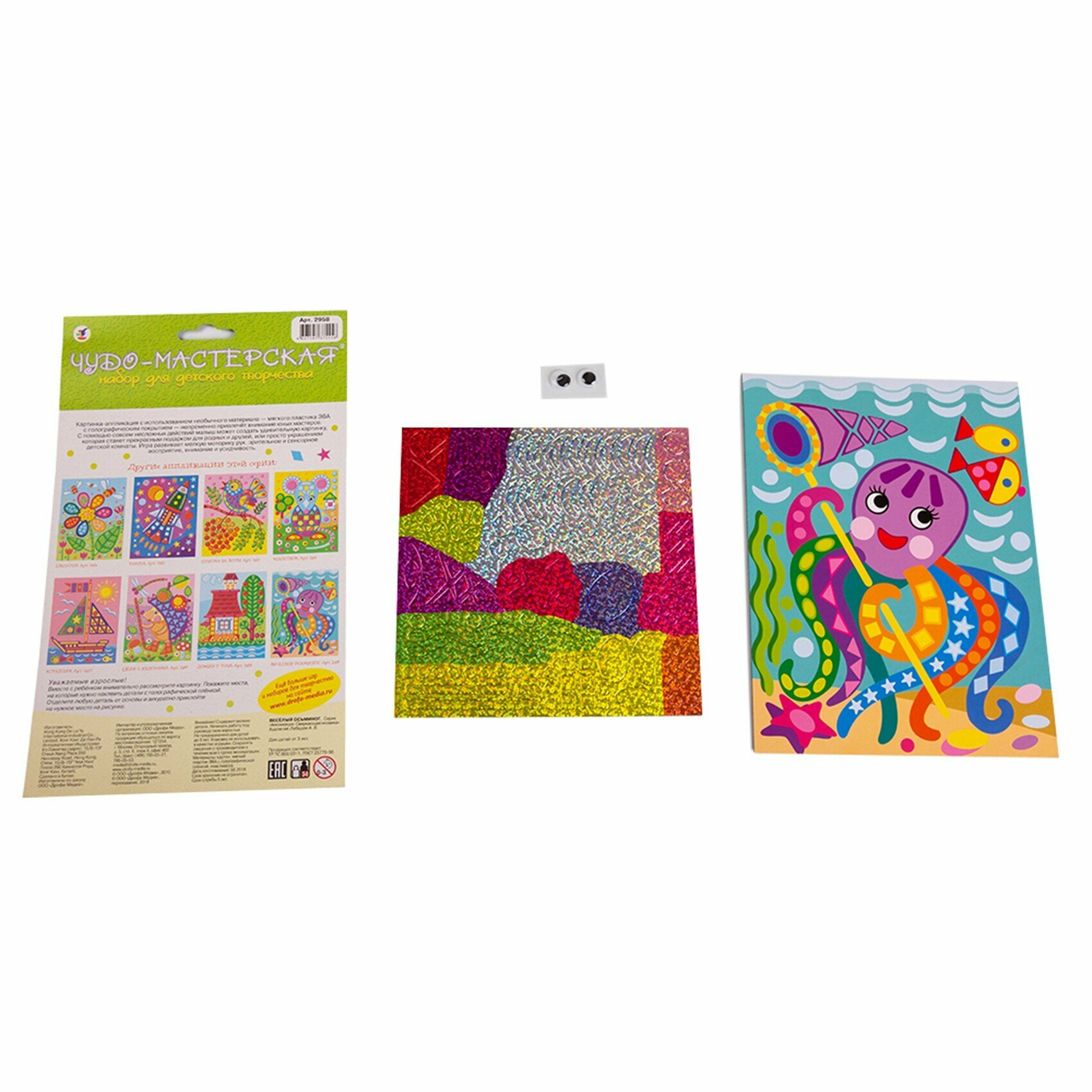 | Состав набора | две картонные основы с рисунком, две пластины с самоклеящимися деталями из вспененного полимера с голографической плёнкой |