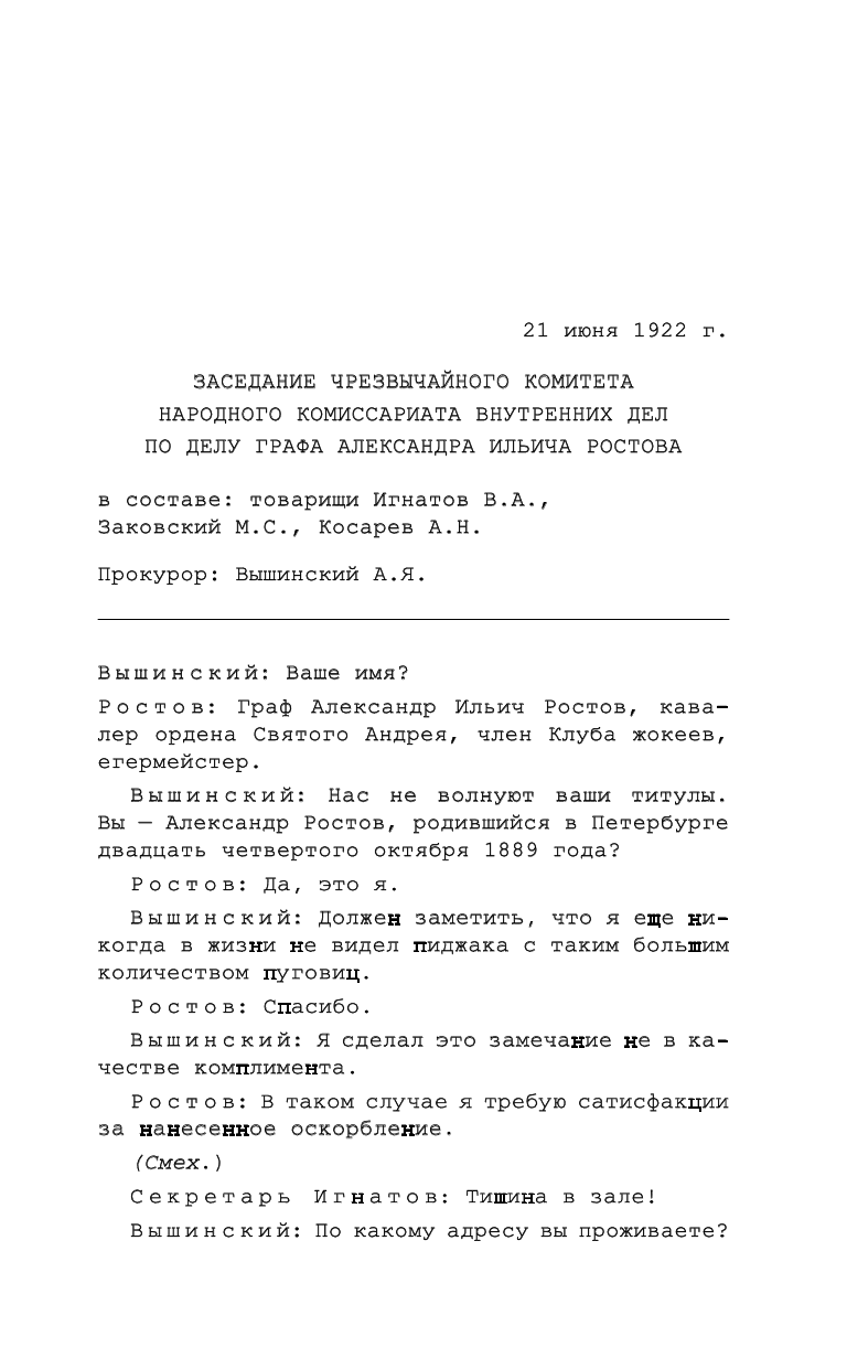 Самоизоляция: "Джентльмен в Москве" (Часть 1)
