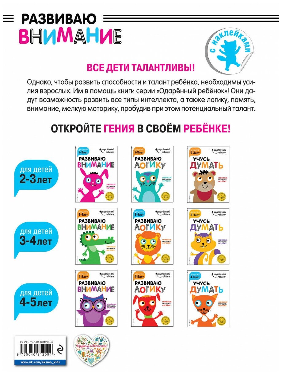 Развиваю внимание: для детей 2-3 лет (с наклейками) (Жилинская Алла Владимировна); ООО "Издательство "Эксмо", 2018