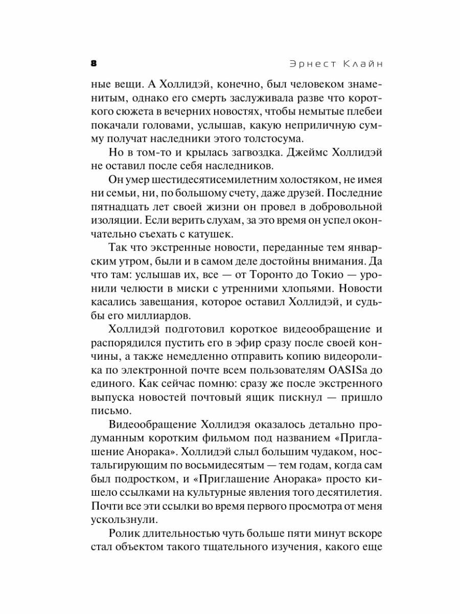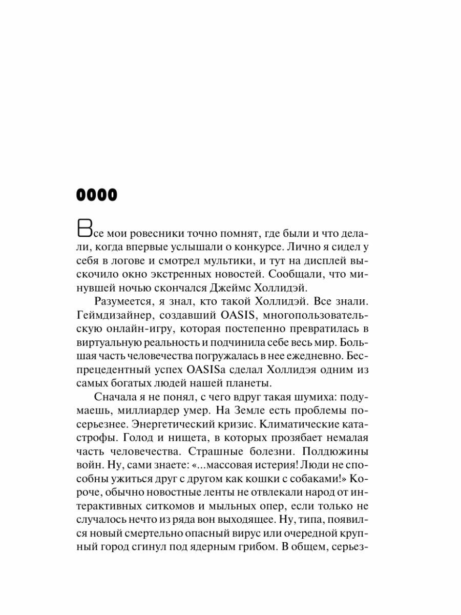 В 2045 году реальный мир - не самое приятное место. По-настоящему живым Уэйд Уоттс чувствует себя лишь в OASISе - огромном виртуальном пространстве, где проводит свои дни большая часть человечества.