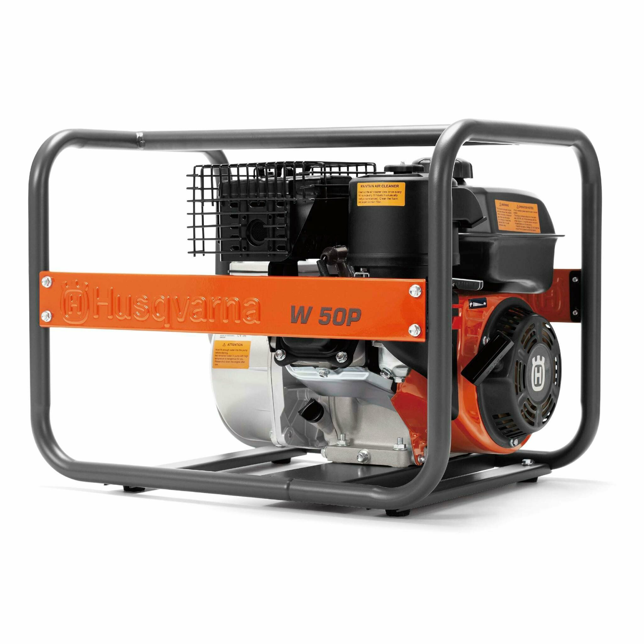 Мотопомпа Husqvarna W50P применяется для ирригации – орошения придомовых территорий, садовых участков, для откачки воды. Глубина всасывания 5 – 7 метров, высота подъёма 30 метров. Производительность агрегата 533 л/мин. Имеет металлическую защитную раму, которая также используется как ручка для транспортировки техники. Двигатель четырёхтактный с функцией облегчённого запуска, мощностью 6,5 л.с. или 4,78 кВт. Объём двигателя 163 кубических сантиметра. Модель двигателя 168FB. Стартер ручной. Ёмкость топливного бака 3,6 литра, масляного бака 0,6 литра. На одной заправке агрегат может проработать 2 часа. Диаметр входного и выходного отверстий 50 мм. Допустимый диаметр твердых частиц 7 мм. Вес оборудования 25 кг.