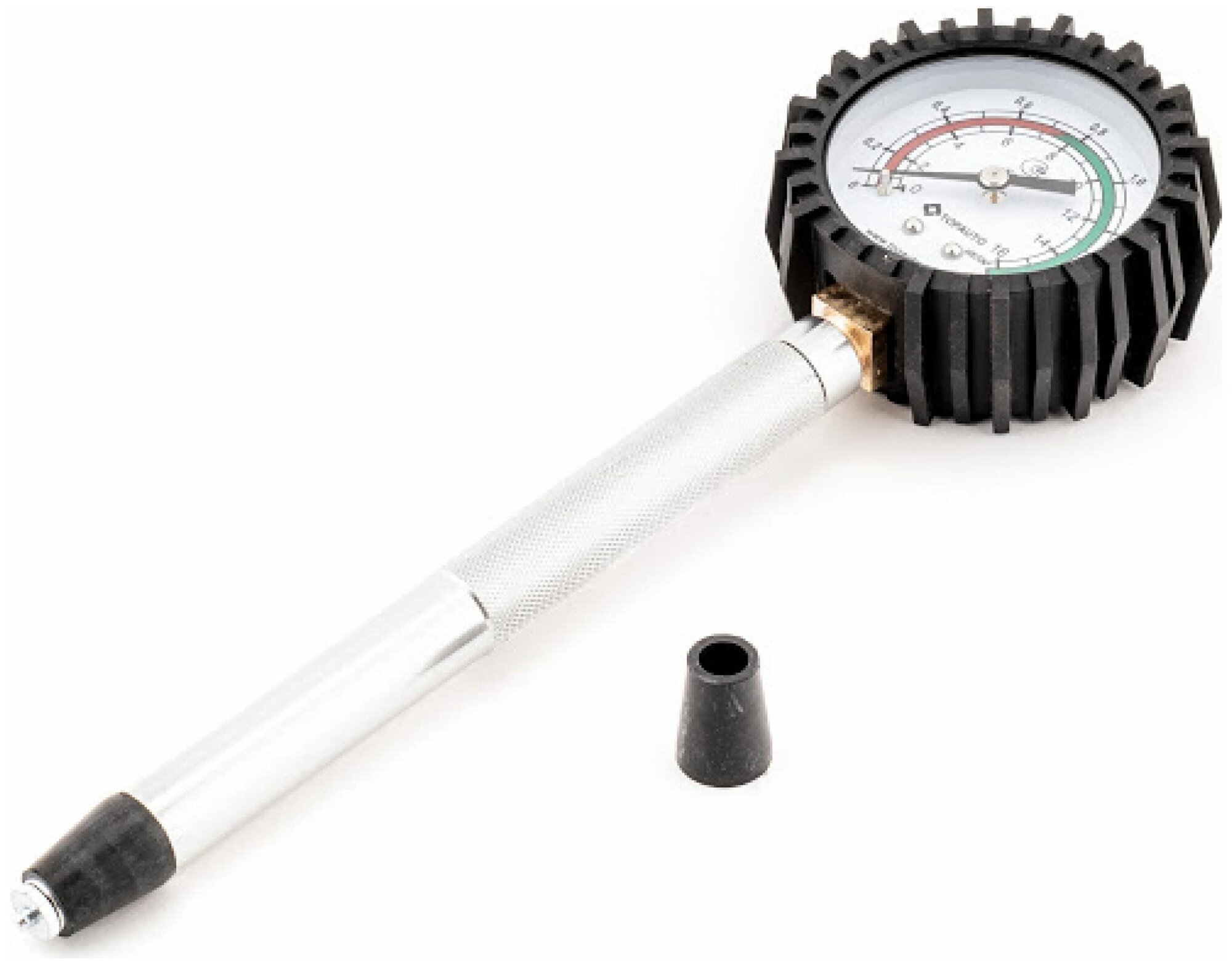 Компрессометр бензиновый для авто применяется для диагностики автомобилей - измерения компрессии в 406-х ДВС - а/м Волга, Газель и других автомобильных и мотоциклетных ДВС, глубина свечных колодцев которых не превышает 160мм. Втулка длиной 17 см. Универсальный компактный компрессометр для бензиновых двигателей автомобильный - манометр в резиновом чехле для измерения компрессии в бензиновых двигателях внутреннего сгорания: автомобильных, мотоциклетных, а также ДВС других транспортных средств. Измерения можно производить с прижимной резиновой втулки. Упаковка измерителя давления топлива - блистер. Незаменим как для собственного гаража, так и для превосходно оснащенного автосервиса. Упаковка измерителя давления топлива практичный пластиковый кейс, наличие которого максимально упрощает хранение и транспортировку прибора.КомплектацияМанометр 60мм до1,6МПа, в защитном чехле / Втулка 170мм / Конус резиновый, прижимной 2шт / Кейс для хранения