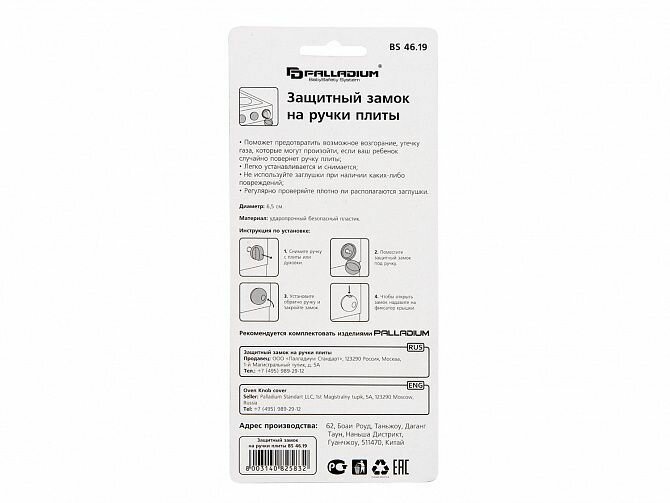 Модель: Защитный замок на ручки плиты BS 4619 Palladium ударопрочный пластик Диаметр 65