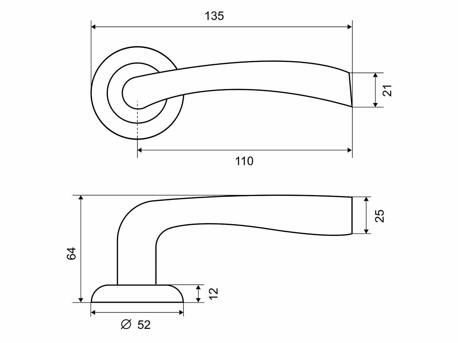 Palladium A Brezza – дверная ручка на круглой розетке из серии City. Интересный вариант для входных и межкомнатных дверей, особенно если вам нравятся выпуклые ручки с укороченным рычагом (120 мм).