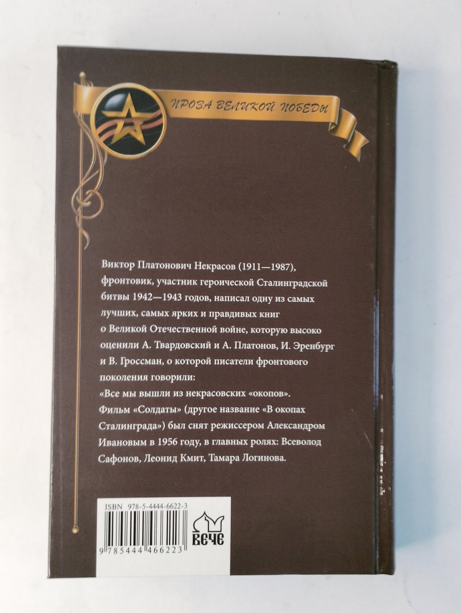 Виктор Платонович Некрасов (1911-1987), фронтовик, участник героической Сталинградской битвы 1942-1943 годов, написал одну из самых лучших, самых ярких и правдивых книг о Великой Отечественной войне, которую высоко оценили А. Твардовский и А. Платонов, И. Эренбург и В. Гроссман, о которой писатели фронтового поколения говорили: "Все мы вышли из некрасовских "окопов".