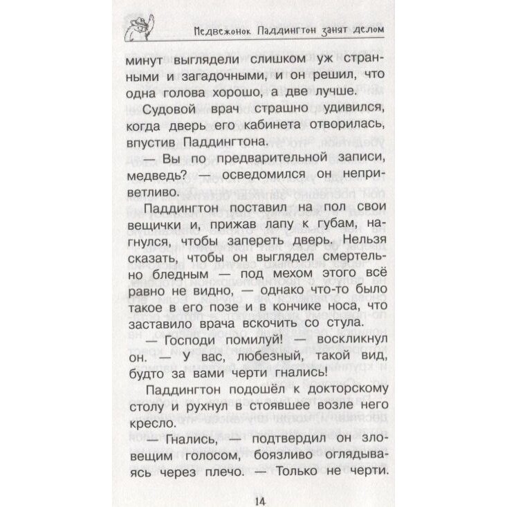 Медвежонок по имени Паддингтон - настоящий искатель приключений! И даже когда он не ищет приключений - они найдут его сами. А предприимчивость неугомонного медвежонка выручит его в любой переделке! Если ему нужно заработать денег, он поднимет на ноги лондонскую биржу или в кратчайшие сроки освоит парикмахерское искусство. И всяким мошенникам и тёмным личностям лучше не вставлять ему палки в колеса - уж он-то умеет вести свои дела так, что комар носа не подточит! Паддингтон всегда найдет выход или оригинальное решение в самой сложной ситуации, и неважно, куда его занесет судьба - в гольф-клуб, на ипподром, свадьбу, прием на высшем уровне или автомобильное шоу. И любое событие станет незабываемым благодаря медвежонку в синем пальтишке.