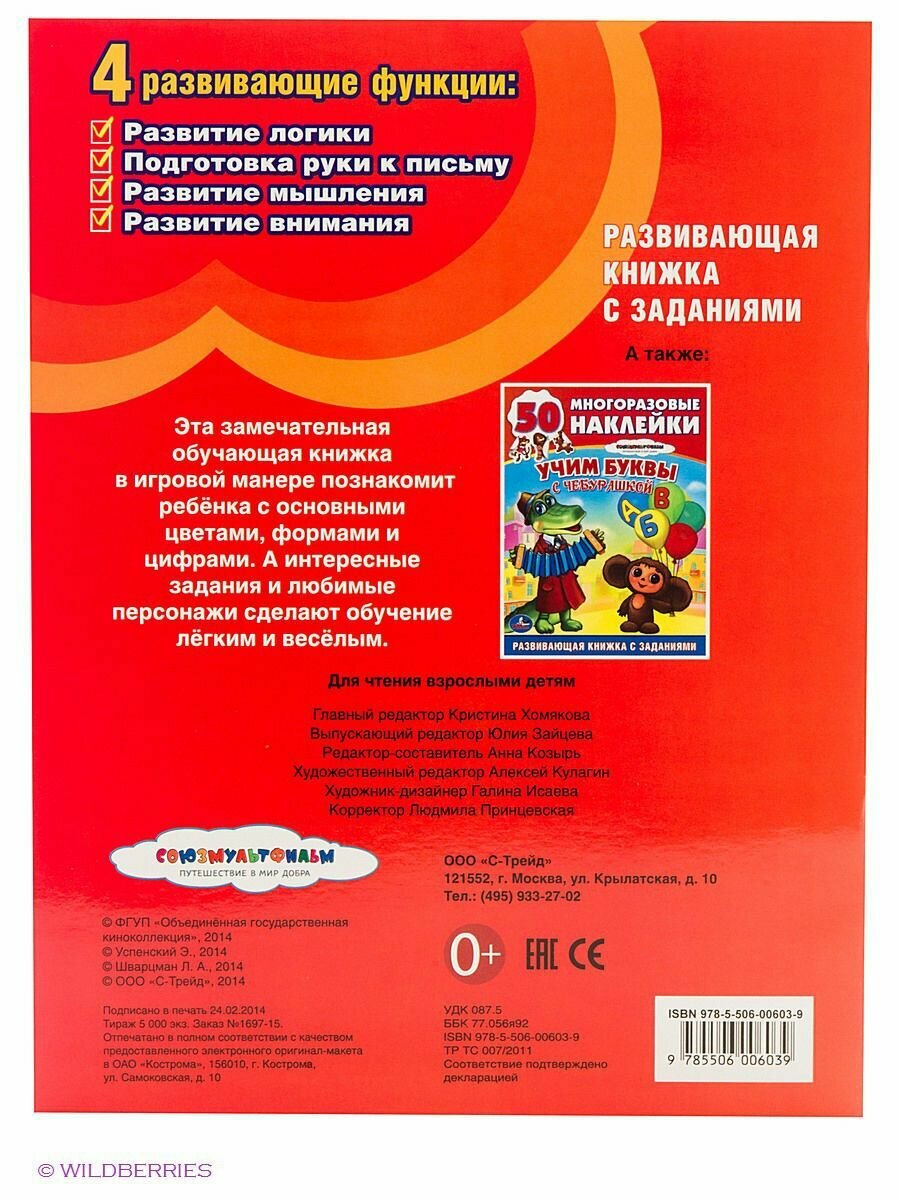 Сервис сравнения цен СкидкаГИД предлагает сравнить цены на товар «Книга: Обучающая Книжка с Наклейками. Союзмультфильм.Чебурашка. Учим Цифры ФормыЦвета. (Козырь Анна); Умка, 2014»