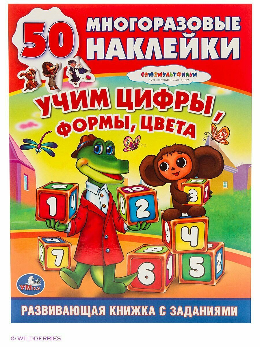 "УМКА". ОБУЧАЮЩАЯ КНИЖКА С НАКЛЕЙКАМИ. СОЮЗМУЛЬТФИЛЬМ.ЧЕБУРАШКА. УЧИМ ЦИФРЫ, ФОРМЫ,ЦВЕТА. в кор.50шт Эта замечательная развивающая книжка "Союзмультфильм. Чебурашка. Учим цифры, формы, цвета" в игровой манере познакомит ребенка с цифрами, формами и цветам