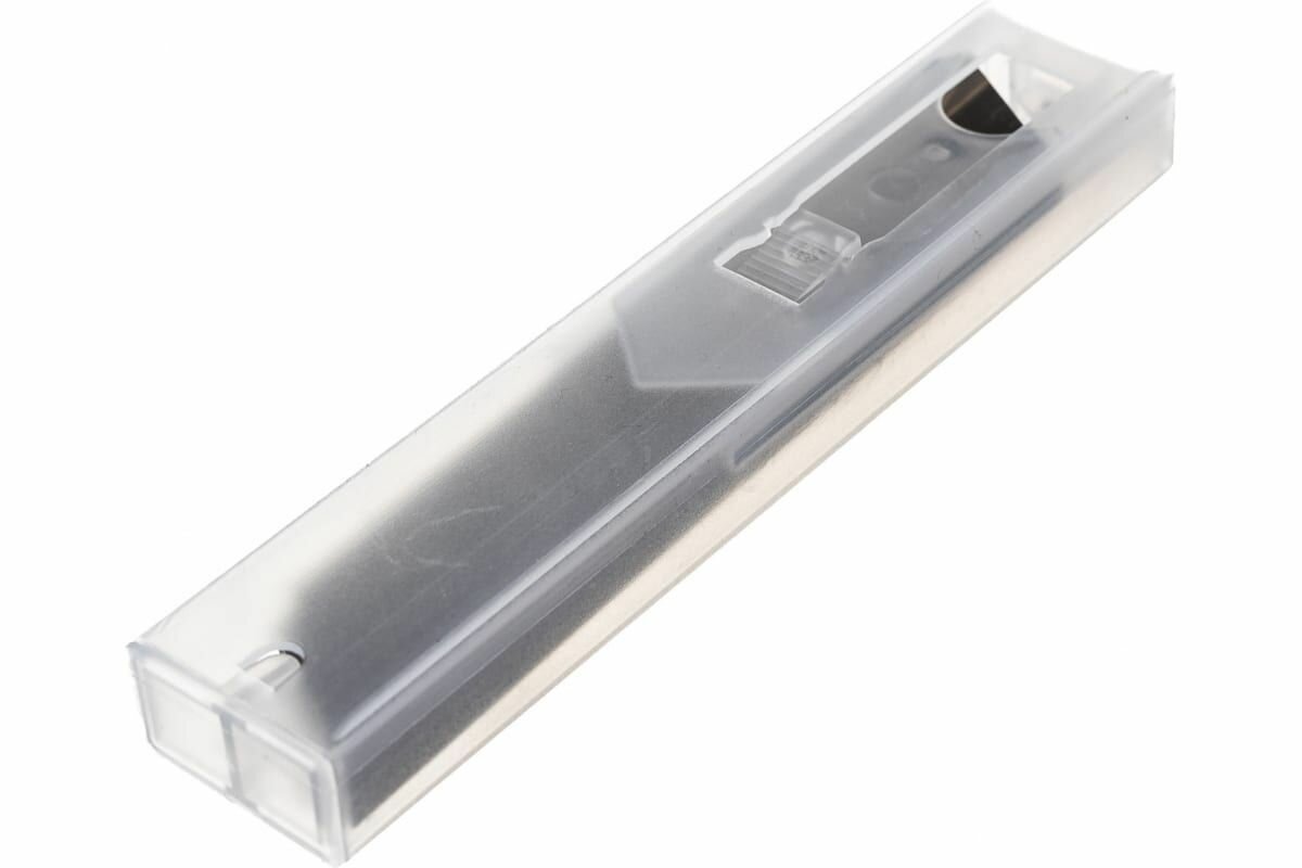 Лезвия Зубр "ЭКСПЕРТ" 09710-18-10 подходят для резки различных материалов, таких как линолеум, ковровые покрытия, пластик, картон, бумага и плинтусы. Применяются как сменный режущий элемент в резаках соответствующего типа.Преимущества: Лезвия изготовлены из легированной стали У8А, что увеличивает срок их службы Двойная заточка сохраняет лезвие острым в течении длительного времени В комплект входит пластиковый футляр для безопасного хранения и быстрого извлечения лезвий Надежность и долговечность использования