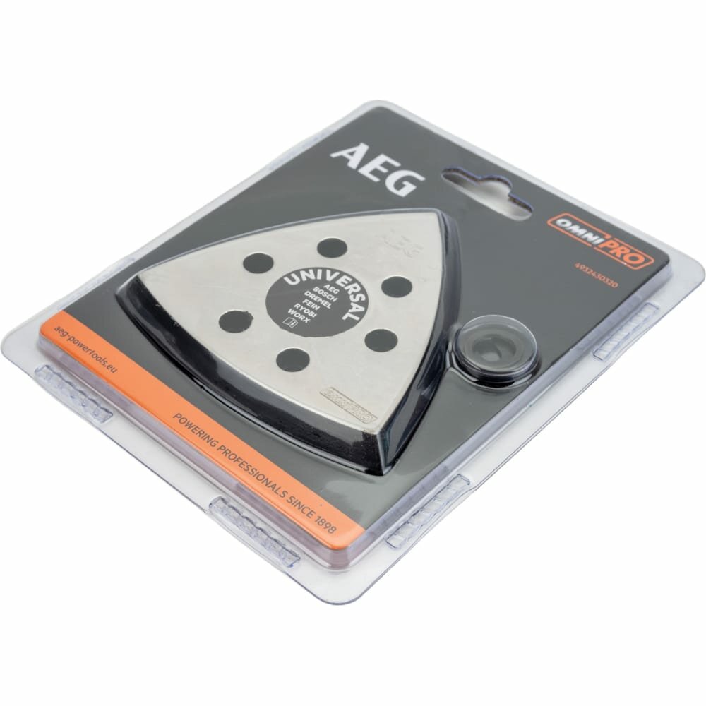 Подошва шлифовальная AEG является насадкой для многофункционального инструмента. Шлифовальная бумага крепится к данной подошве при помощи липучки, что позволяет ее быстро заменить при необходимости.