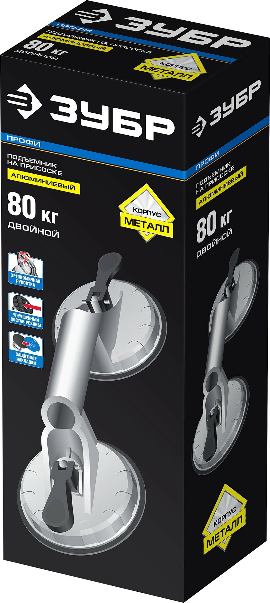 Надежный захват груза, удобная сбалансированная рукоятка и комфорт при работе - все это стеклодомкрат ЗУБР ПРОФЕССИОНАЛ - незаменимый помощник при монтаже и транспортировке стекольных изделий, а также других грузов, имеющих гладкую поверхность. Он основан на вакуумном принципе работы, имеет противоскользящее резиновое основание и эргономичную рукоятку.