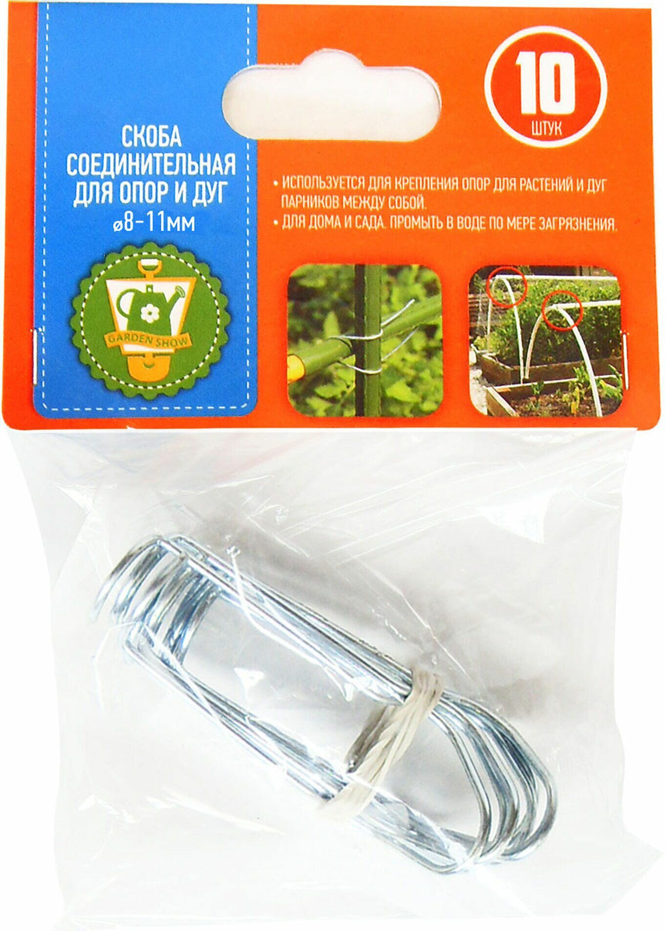 Опоры для растений и кустодержатели Garden Show Скоба соединительная GARDEN SHOW для опор и дуг 8-11мм 10шт/уп металл