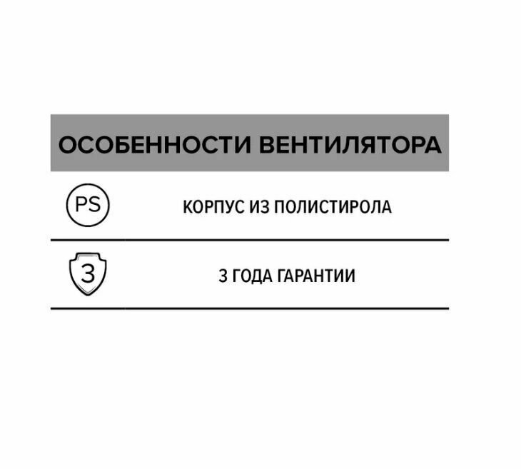 - Вентилятор оснащен предохранителем с защитой от перегрева.