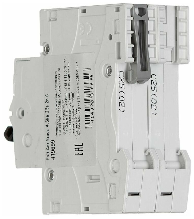 Модель: Автоматический двухполюсный выключатель Legrand RX3 4,5 кА 25 А 2П C