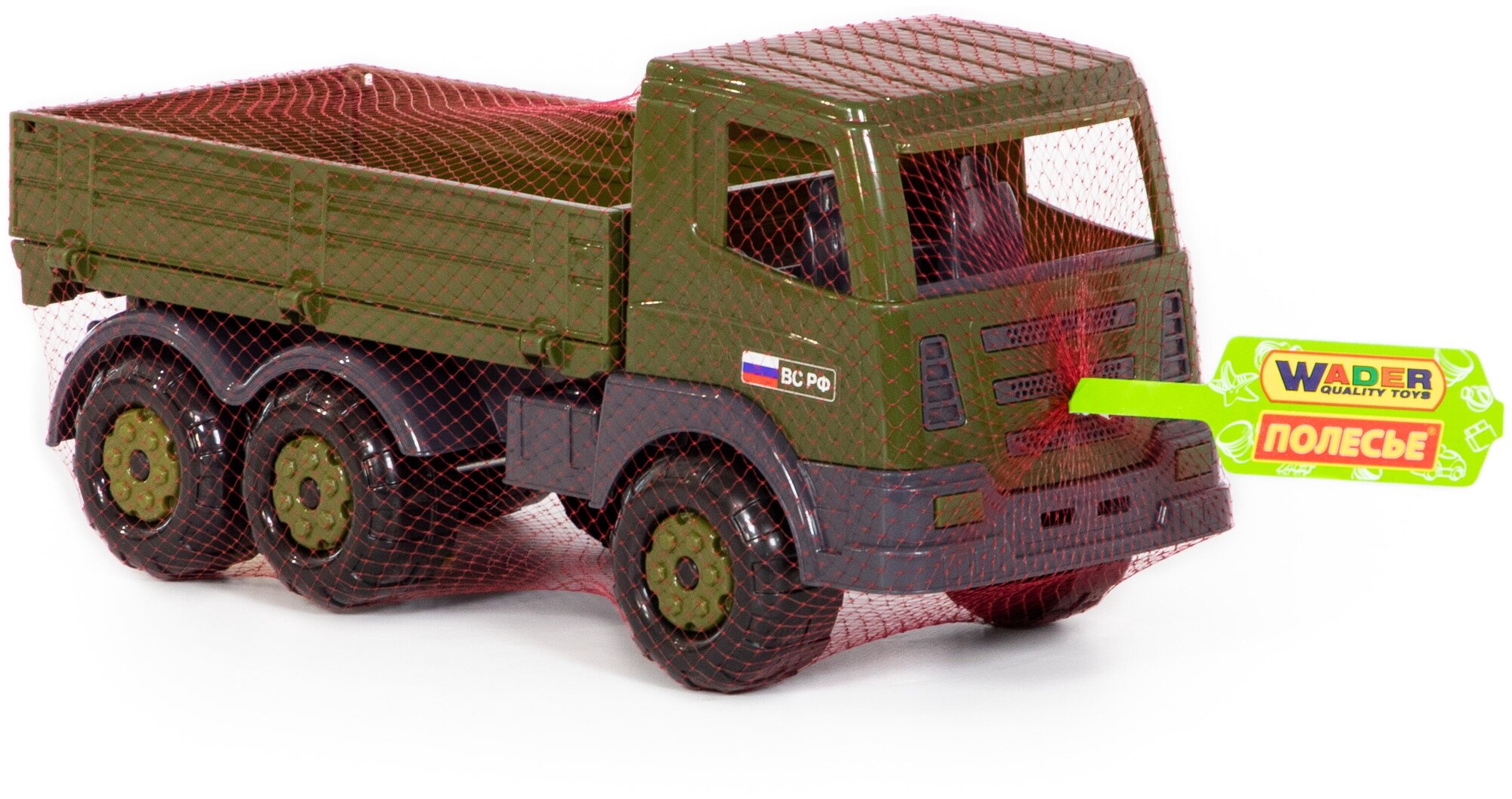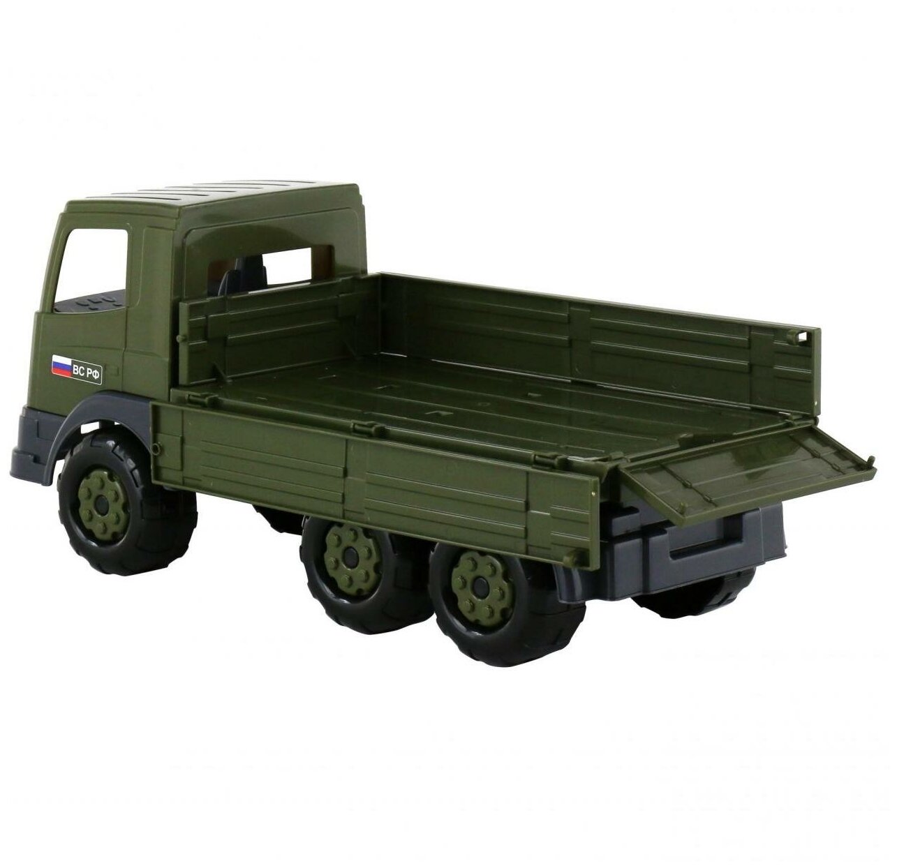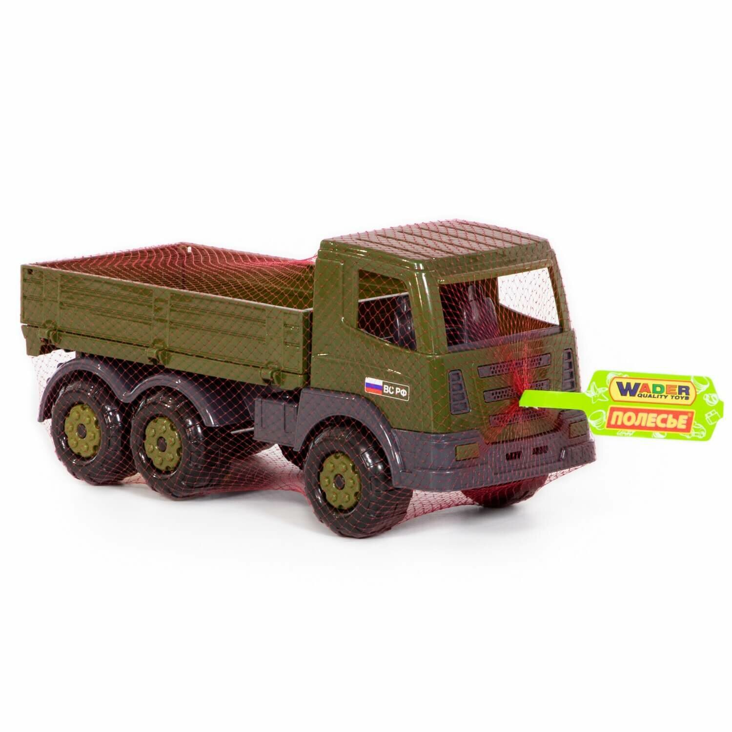 Полесье Автомобиль бортовой военный Престиж - военный бортовой автомобиль из серии игрушек военной техники. На автомобиле предусмотрены открывающиеся борта. Автомобиль подходит для перевозки различных грузов, а так же игрушечных солдат. На переднем бампере предусмотрено отверстие для веревки. Теперь Ваш ребенок сможет водить автомобиль за собой на веревочке. С этой игрушкой можно играть как на улице, так и в доме.