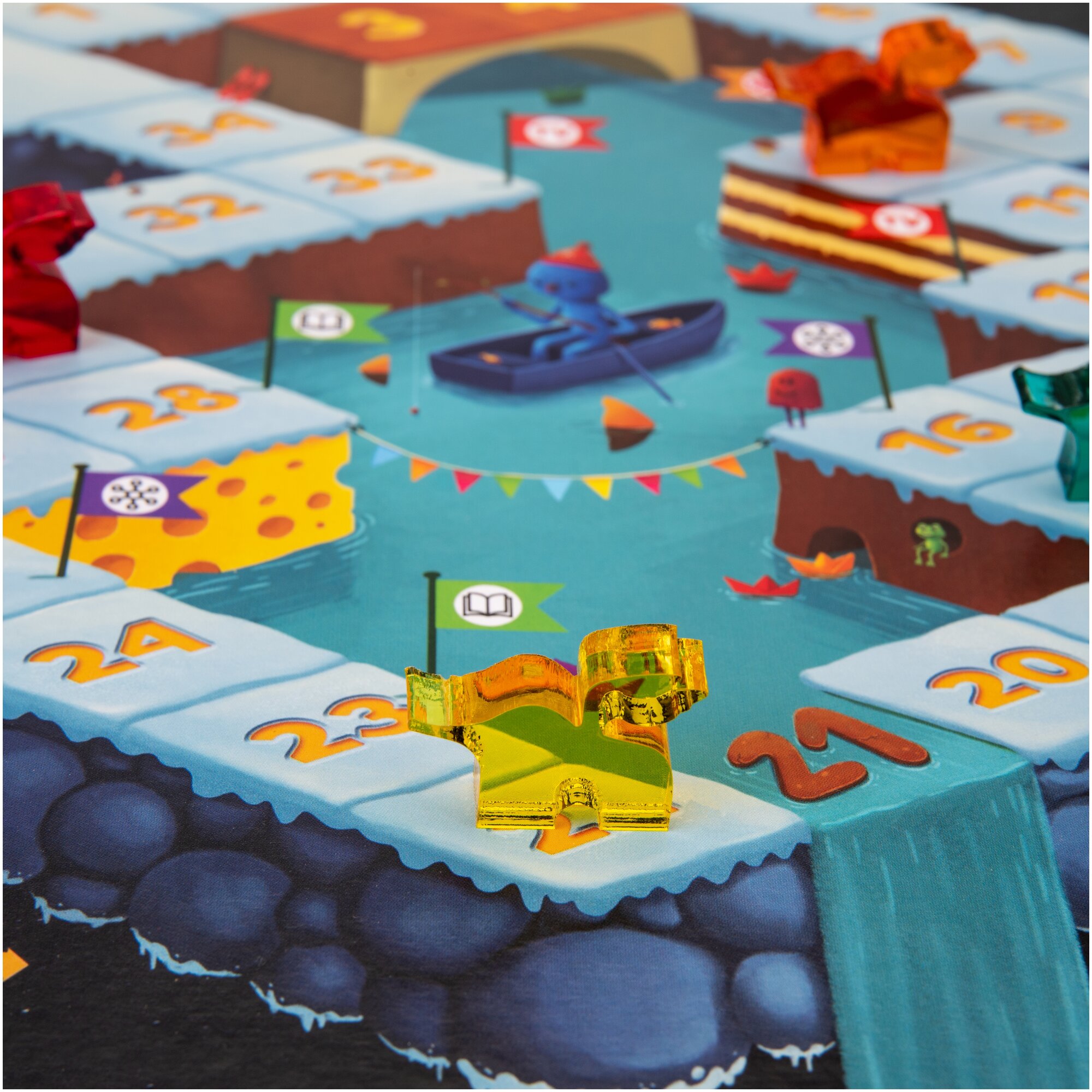 | Состав набора | коробка-поле, 64 карты с иллюстрациями, 36 жетонов (по 6 на игрока), 6 фигурок-жирафов, список иллюстраторов |