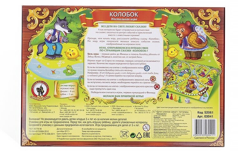 | Состав набора | игровое поле, 4 фишки, кубик |
