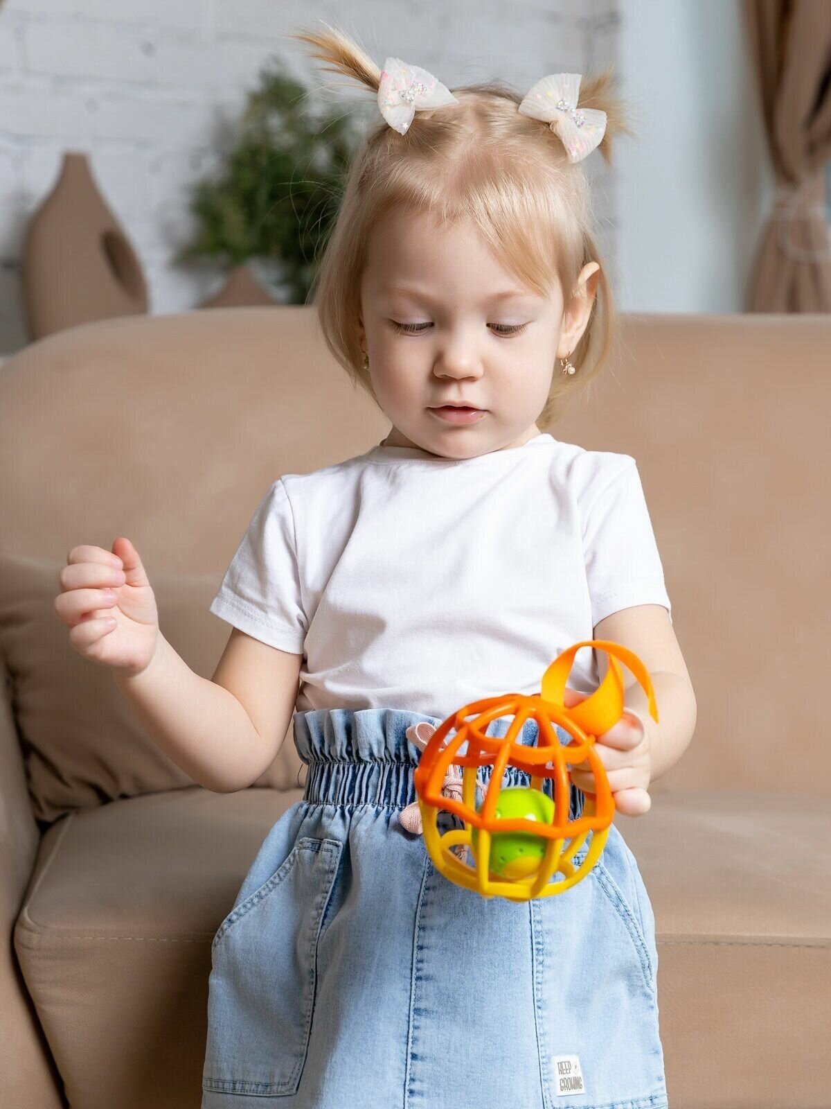 С такой игрушкой малыш не будет плакать и грустить, ведь мячик так весело смеётся! Забавные звуки и мелодии ("Чунга-чанга", "Кукарача" и другие) не дадут скучать! Мягкий гибкий пластик приятно сжимать маленькими ручками: это отлично развивает мелкую моторику и тактильное восприятие.