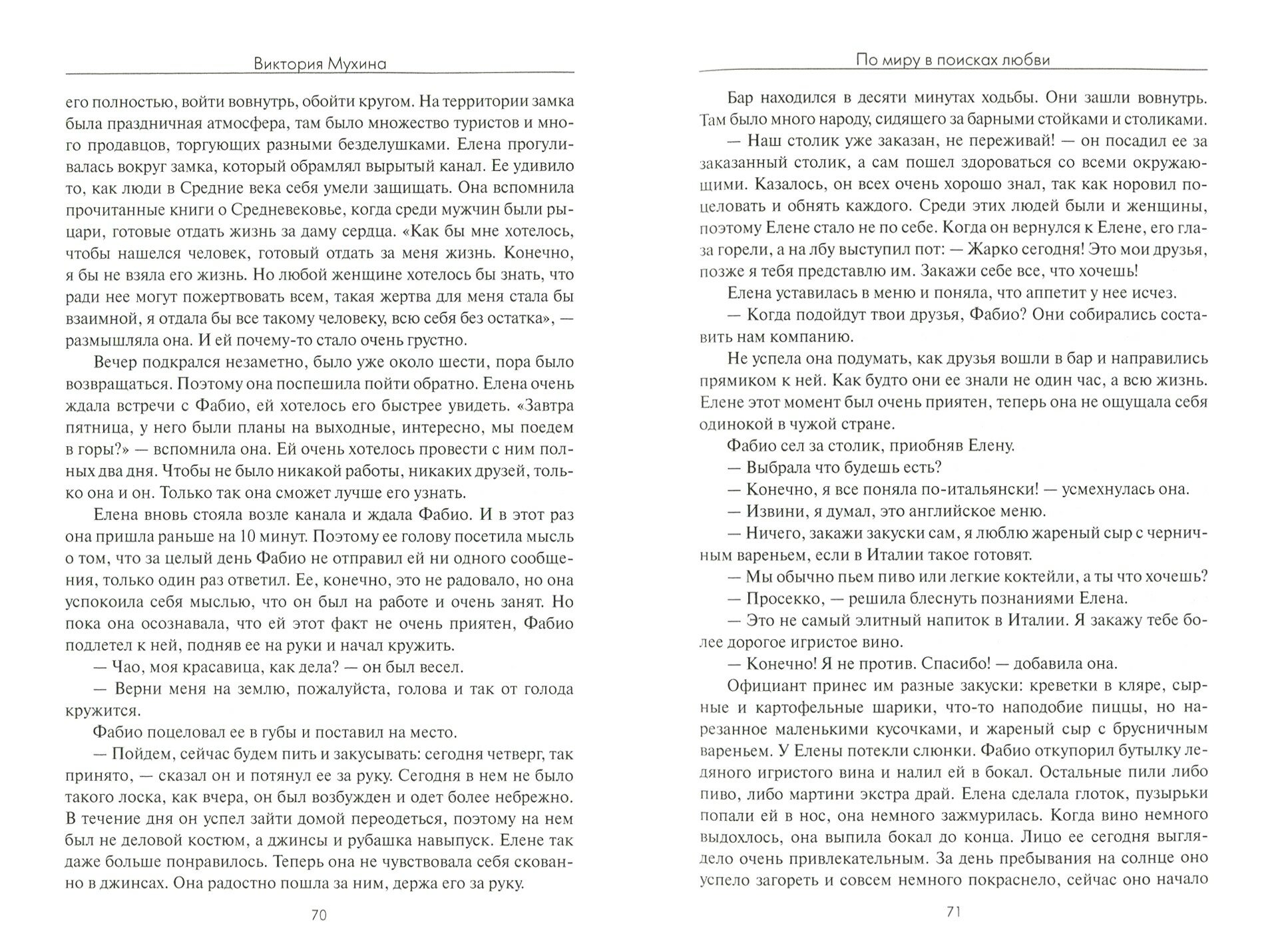 Елена - молодая женщина, которая нуждается во взаимной любви. Но судьба к ней неблагосклонна и подвергает её тяжелым испытаниям. Каждый раз, когда у Елены появляется надежда на счастье, все рушится. Действия разворачиваются в Турции, России, Австрии, Италии, но Елена путешествует по миру не в поисках приключений, она ищет своего единственного мужчину, с которым они составят идеальную пару для совместного будущего. Жизнь Елены полна ярких красок, но временами бывает очень сурова. Перед ней часто встает вопрос: когда наступит конец ее разочарованиям? Но ответов ей никто не даёт. Она находит их сама. И всё же встретит ли Елена того, кто поддержит ее, кто протянет ей руку помощи в сложный момент, поможет ей не сойти с ума и обрести себя вновь, когда кажется, что все потеряно? Ответ вы найдете на страницах романа "По миру в поисках любви".