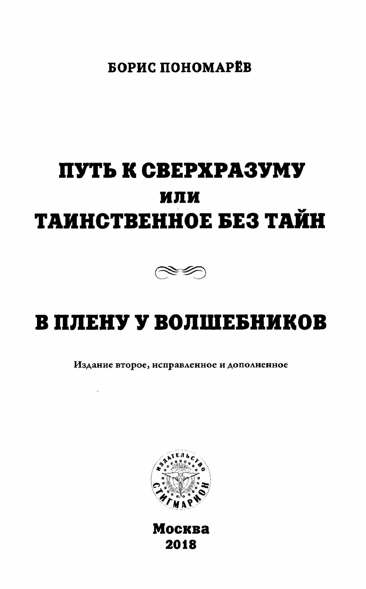 Путь к сверхразуму или таинственное без тайн. В плену волшебников (Пономарёв Борис); Стигмарион, 2018