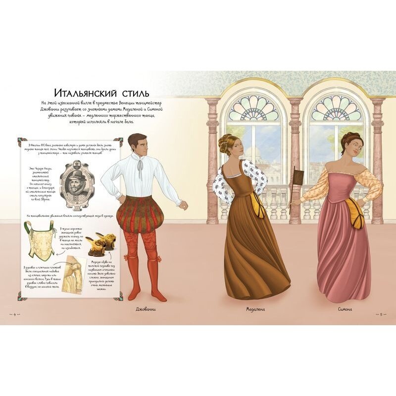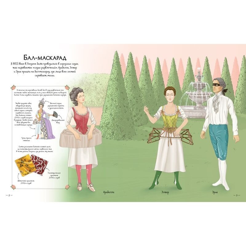 Журналов этой серии у дочки уже достаточно много, и этот не стал исключением для покупки. Иллюстрации прекрасные. В книге очень много вариантов костюмов и аксессуаров разных времён и эпох. К каждому развороту есть интересный текст с историей костюмов, платьев. Детям дошкольного возраста надо будет помогать расклеивать наряды в этом журнале, так как материал и подача будет, на мой взгляд им сложноваты. Школьники вполне справятся сами.