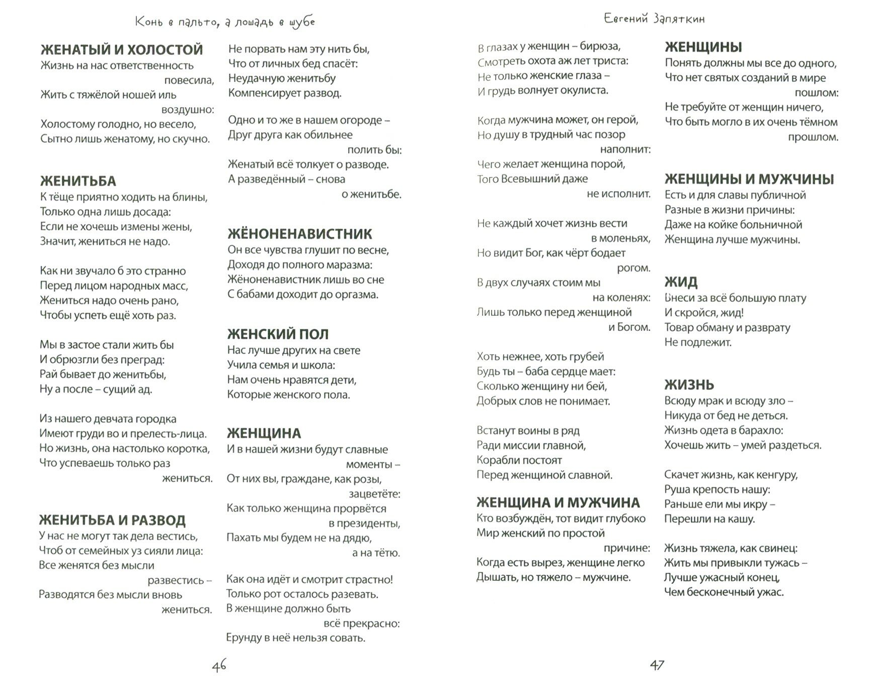 41-я книга Евгения Запяткина включает в себя две тысячи поэтических миниатюр-ЗЕВСограмм. Четверостишие Евгения Запяткина - это философское осмысление окружающего мира, средоточие живого остроумия и самобытного юмора. Их пронизывают задорные мотивы залихватских русских частушек. Катрены Евгения Запяткина сопоставимы с рубаи Омара Хайяма на современный лад.