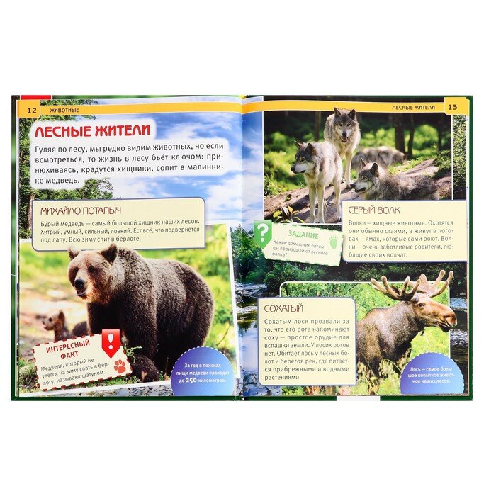 На страницах книги «Животные» ребенок найдет зрелищные фото и удивительные факты, познакомится с животными из разных уголков земли. Вся информация в энциклопедии проверена научными консультантами, она одобрена психологами и рекомендована для подготовки к школе.