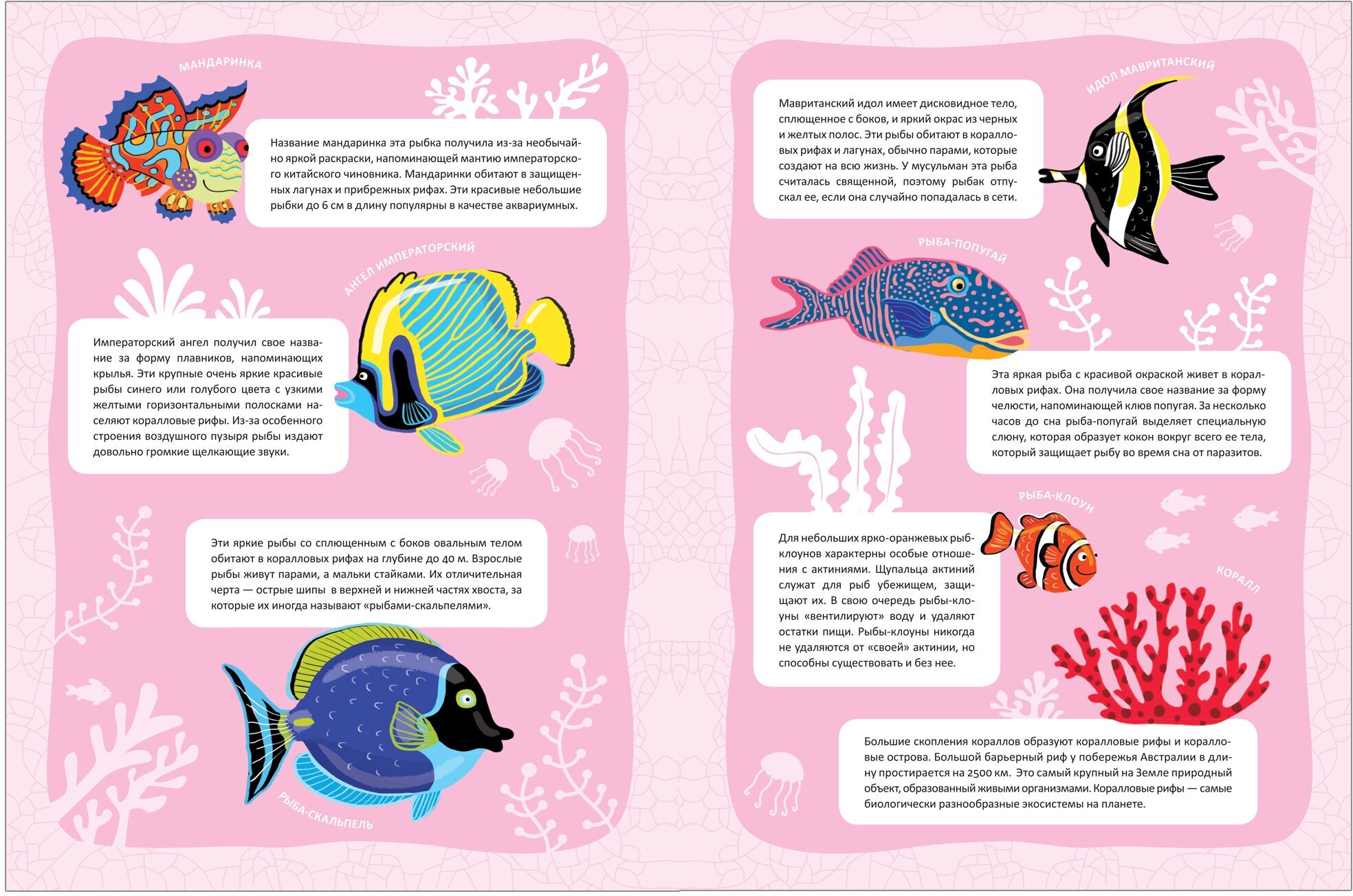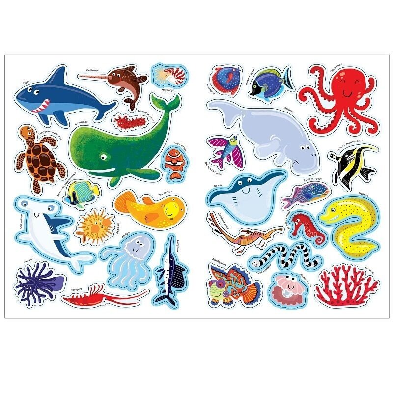 Помимо множества занимательных фактов внутри книги малыша ждет сюрприз – большая панорамная иллюстрация с изображением подводного мира. Дополняя ее яркими многоразовыми наклейками – морскими обитателями, он не только закрепит новые знания, но и создаст красочный плакат, которым можно украсить стены комнаты.
