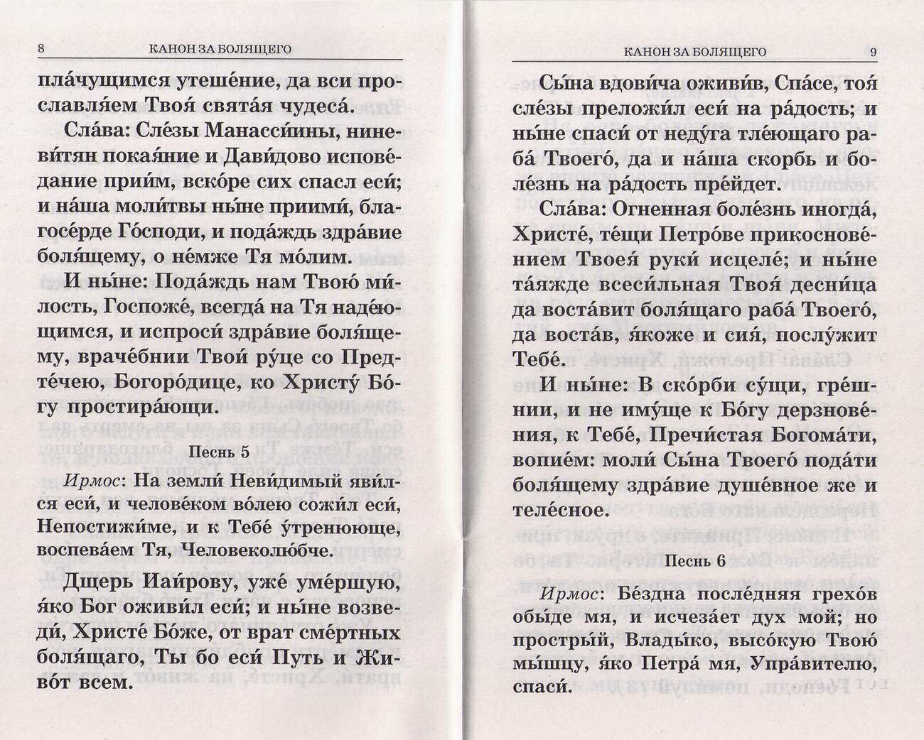 В настоящей брошюре представлены канон и молитвы за болящего, напечатанные крупным гражданским шрифтом для слабовидящих и для чтения при слабом освещении.
