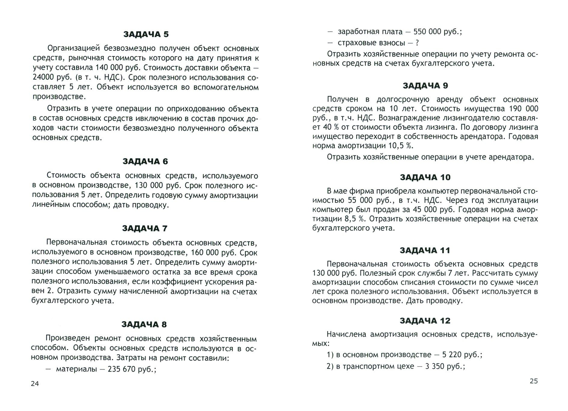 Настоящий сборник задач по бухгалтерскому учету представляет собой практическое пособие по отражению в бухгалтерском учете фактов хозяйственной деятельности организации с учетом требований документов российской системы нормативного регулирования бухгалтерского учета. Пособие содержит набор задач, сгруппированных в 13 разделов по объектам учета. Рассмотрено 13 тем в соответствии с рабочей программой по ПМ 01 "Документирование хозяйственных операций и ведение бухгалтерского учета имущества организации", ПМ 02 "Ведение бухгалтерского учета источников формирования имущества, выполнение работ по инвентаризации имущества и финансовых обязательств организации", ПМ 04 "Составление и использование бухгалтерской отчетности". И
