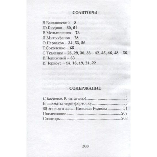 Эта книга рассказывает о шахматном пути одессита Николая Васильевича Резвова (1921–2013). Он прожил долгую и трудную жизнь. На пороге 90-летия Резвов стал гроссмейстером Украины и международным мастером ФИДЕ по шахматной композиции. В книге представлены 80 этюдов и задач одесского гроссмейстера, которые помогут вам лучше понять красоты и глубины шахматной игры.