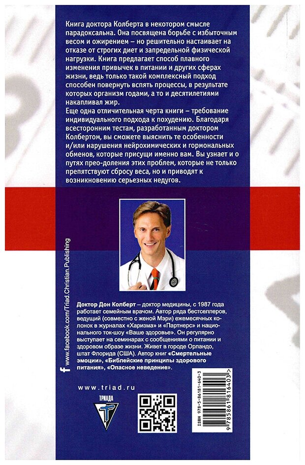 Доктор Дон Колберт - доктор медицины, с 1987 года работает семейным врачом. Автор ряда бестселлеров, ведущий (совместно с женой Мэри) ежемесячных колонок в журналах "Харизма" и "Партнерс" и национального ток-шоу "Ваше здоровье". Дон Колберт живет в городе Орландо, штат Флорида (США).