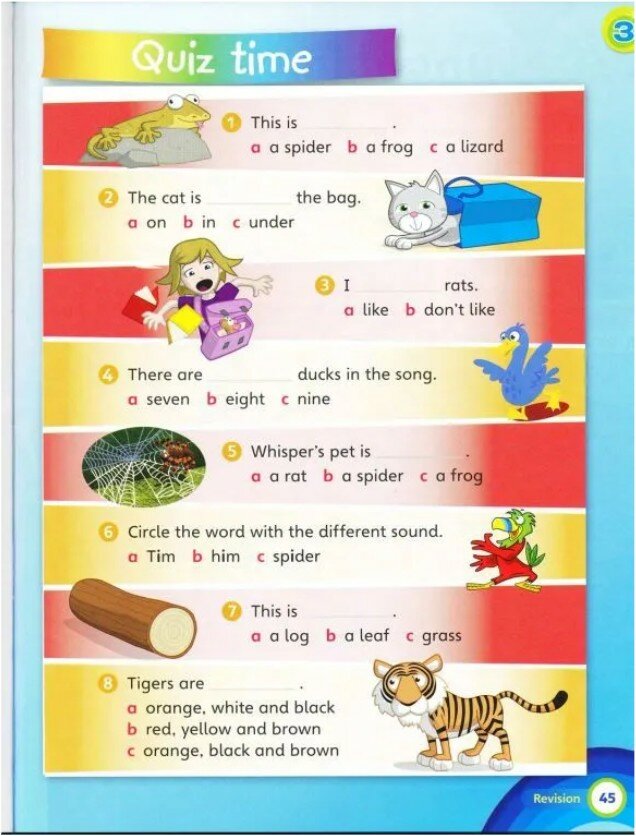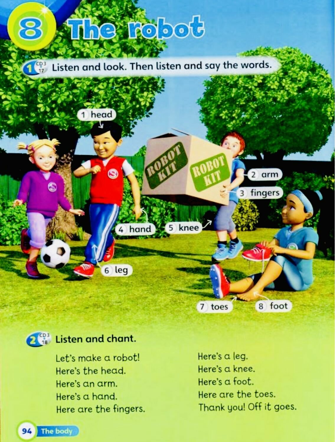 Учебник содержит основные уроки курса и открывается вводным юнитом, далее идут 9 основных. Изучение и тренировка нового языкового материала происходит с помощью песен, рассказов и подвижных упражнений.